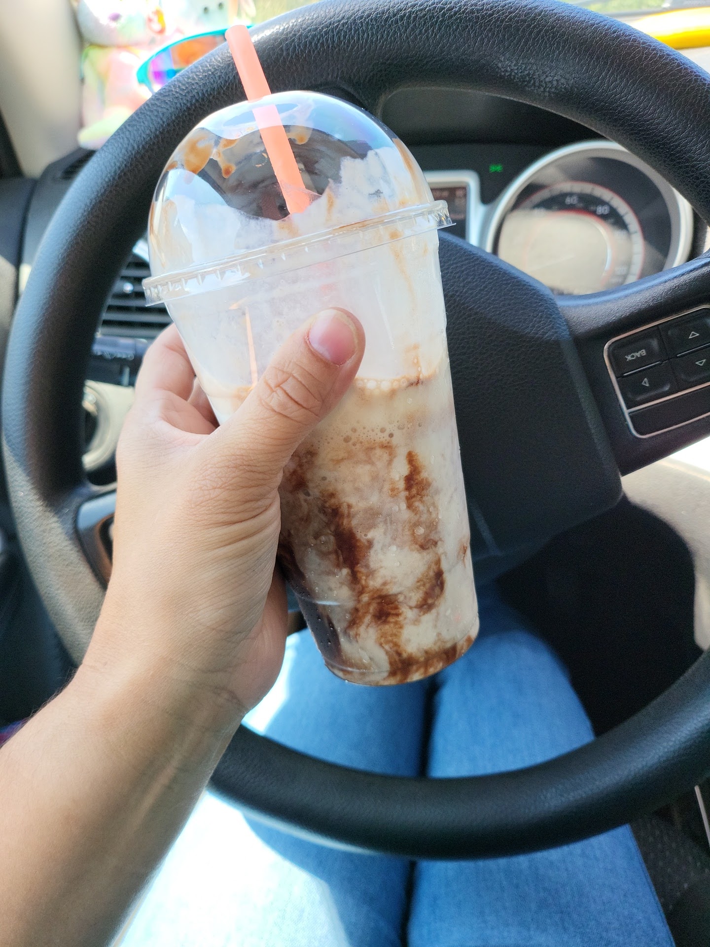 Read moreOh, wow didn't expect what was found on the inside. I have driven through grabbing a decent priced yummy drink on my way to do errands several times before because they are a convenient in and out on the road. This visit was the first that I went inside. I went to pick up a kiddo that had gone there with a few friends. I didn't quite know what to expect due to the worn and weathered exterior. A little confused why the kids went there. The inside is bright, clean and inviting. There is a pleasant play area with a chalkboard for drawing. A nice area to sit and read or pick up a boardgame and spend some time with a good drink and a friend. Ended up taking a seat and spending a few minutes with the kids as they finished up their game of chess. Customer service was friendly and a super multitasker handling front counter and drive thru like a pro. Lucky to have this in the neighborhood. 🙂 Looking forward to not just driving...