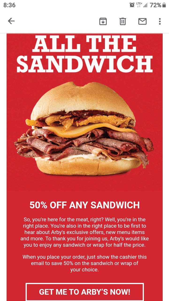 The reason is this: If I order via the app for delivery, not only am I charged for the delivery service and a tip, but the price of the sandwich is more as well. I'm good with that, I understand why that is so! When I ordered the sandwich, there are at least a dozen options that I can choose to go with it. I choose TWO, the same TWO, every time.