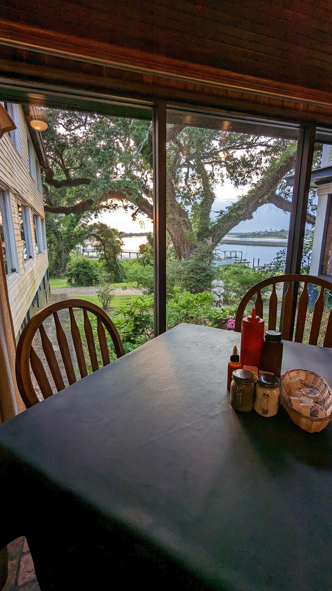 Read moreOooh man was this place good! When I read the reviews, they seemed very mixed, good and bad. I figured for $18 how can you really go wrong with All You Can Eat Fried Shrimp and Catfish. The building is historic and really cool. I didn't want to take the waitresses time by asking too many questions, but I'm sure she would have had the answers. For an old building, I was surprised it didn't smell weird or musty at all and was in good condition. The outside definitely needed a power wash, but I'm sure that's all apart of being on the water and they take care of that during spring cleaning. Upon being seated your given fresh biscuits and jelly, so good! They keep local molasses on the table as well, for your biscuits and sweet potatoes. I usually worry about farm raised fish and am leary, but their catfish was so clean! It didn't taste like dirt or mud at all. Nice white fillets fried up well and served hot. We don't usually eat fried food outside of our house either, because of salt, bad oils and sick stomachs, but we didn't have any stomach issues after eating. Mind you, we did not stuff ourselves and only ate until we were content as well. Which was actually just the first plate and we both ordered an extra round of shrimp. The shrimp were so good! Little fried nuggets of heaven served up hot, and fast. Our waitress was incredible, we talked about her dad and a few other random things. We never waited for a refill and she checked on us regularly. The sweet tea was incredible with free refills. The only weird part was at the end. For my side I picked baked sweet potatoes because my dogs were in the car and they LOVE sweet potatoes, I do not. As with most places that offer A.Y.C.E. they don't want you bringing extra orders of food home. But here, they won't even let you bring home the potatoes and 2 shrimp left on your plate. Which 1, seems super wasteful (unless your reserving them, which is illegal) and 2 seems incredibly chinchy, or maybe insane. Put a weird feeling of potentially not returning, businesses that operate like this worry me. Who knows what goes on for them to be so adamant about no to go boxes. The table next to us all ordered regular meals, no A.Y.C.E., and the waitress still wasn't allowed to give them a box, she had to take the plate to the back and box it up herself. The table was as shocked as I was and it put the poor waitress in a very odd position. I hope these things don't affect her tips, but as a server, I know they do and that's not right. I put my dogs potatoes in my purse, paid the tab with a nice tip and rolled out. All in all the food was incredible, the service was top notch, and the building itself was...