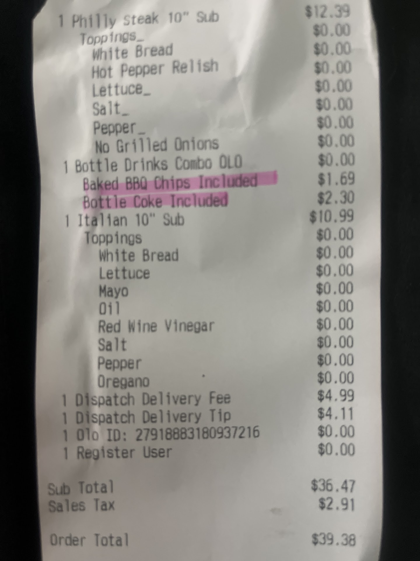 Read moreWe made an order online for pickup. Husband got home and opened his sandwich. It was just Philly on wheat with meat and cheese. Whereas, he ordered the Philly along with extra toppings and white bread. We paid for the 10â on our total of 3 sandwiches. His was significantly smaller with none of the extras.