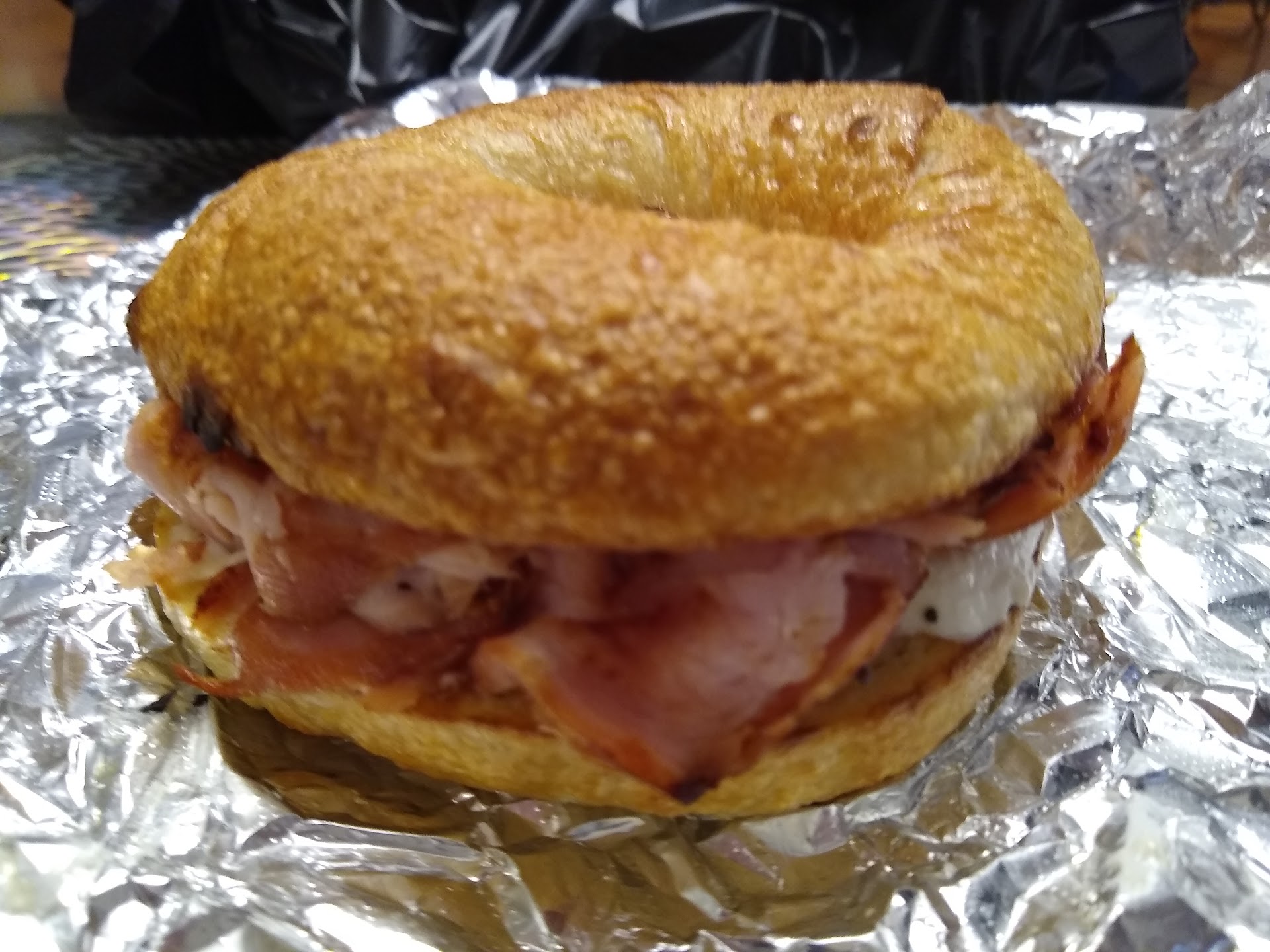 Lil Market Deli & Bagelry is just a block away from our Airbnb in Ocean Springs. Was looking at some quick breakfast options and this place caught my attention. Walked to their restaurant this morning to see what it was all about. When you walk up they have a nice looking outdoor seating area. Once inside I began checking out the menu and decided on a steak, egg, and cheese bagel on a jalapeño and cheddar bagel for myself. Also got a blueberry and everything bagel seasoning bagels with cream cheese for the better half and daughter. I brought everything back to our Airbnb to eat. The girls said their bagels were good. That steak, egg, cheese, caramelized onions, and housemade breakfast sauce bagel was the best bagel I've ever had. Probably the best breakfast sandwich I've ever ate. Will definitely be getting another one of these before we leave at the end...
