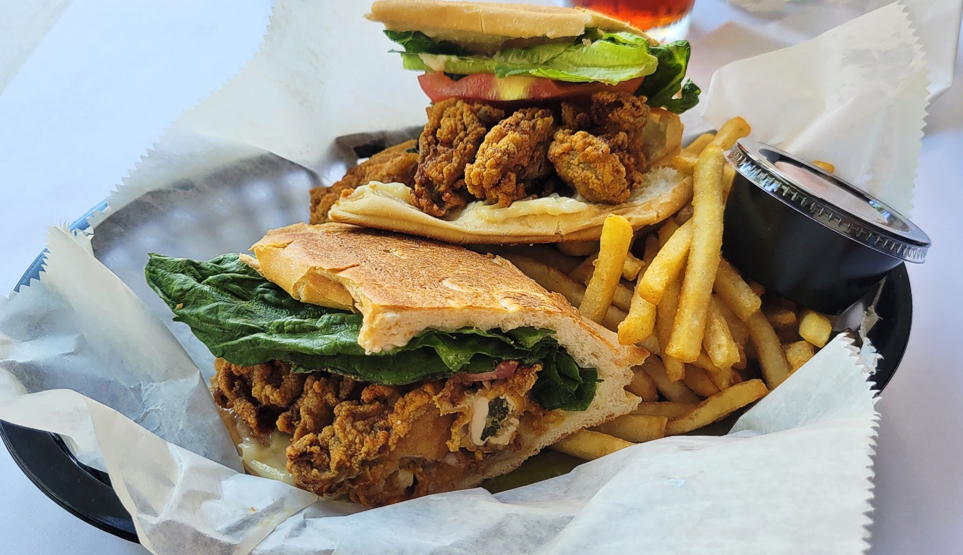 Read moreFrom front porch dining with a view overlooking the gorgeous oak lined downtown to indoors or a beautiful hidden outdoor courtyard in the back I assure you that the greatness doesn't stop there. (Outdoor spaces are pet friendly and they do offer fresh bowls of Water for our furiends!) The only thing I'm upset about is the fact that I waited so long to stop in and try this amazing locally owned and operated small business. We have yet to join them for dinner but maybe that's because all I can think about is their lunch. Sometimes being a pescatarian can be difficult... But not here.... the options are perfect for most. So this is that place that you take visitors to that are from out of state... this is that place that offers one of a kind options made with the freshest ingredients and locally sourced seafood for those who love it. Those we have taken to try it have all fallen in love. Personally I'm addicted to the veggie panini and oyster poboy (when its available) is the best ive ever had... something about that perfectly seasoned eggplant mixed with the warm goat cheese and roasted red peppers just sends your taste Buds into overdrive. For my fiance it's the shrimp poboy. They also offer daily specials and housemade soups. If you're lucky enough to be there when they serve the roasted red pepper and gouda soup just do it... it's to die for! Let's not forget about their friend Green tomatoes or their award winning bree appetizer. Basically there has not been 1 thing ordered by us or friends that hasn't been anything less than outstanding!! Just go! Grab a drink from the bar or sit out front and enjoy the beautiful view of downtown...