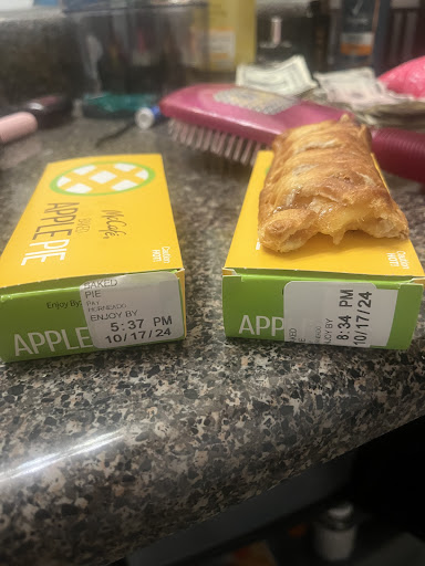 For those who haven’t worked in mcdonald’s or fast food, you are supposed to put a time sticker on the apple pie boxes so that you know when you’re supposed to throw them out and replace them with new pies. Typically their shelf time from the oven is roughly 2-3 hours.