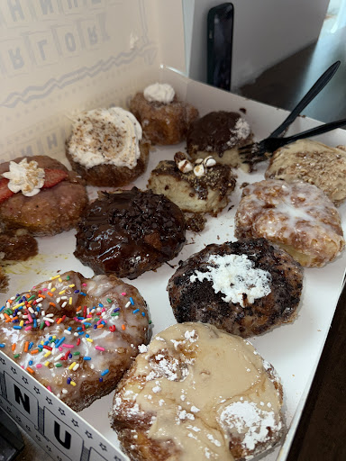 Parlor donuts are larger than a traditional donut. Additionally they have cream on top, and various items on the outside (mini marshmallows, coconut, drizzles of various flavors). The texture is interesting. They are soft/creamy inside, but there is a crunch when you bite into them. I love that crunch!