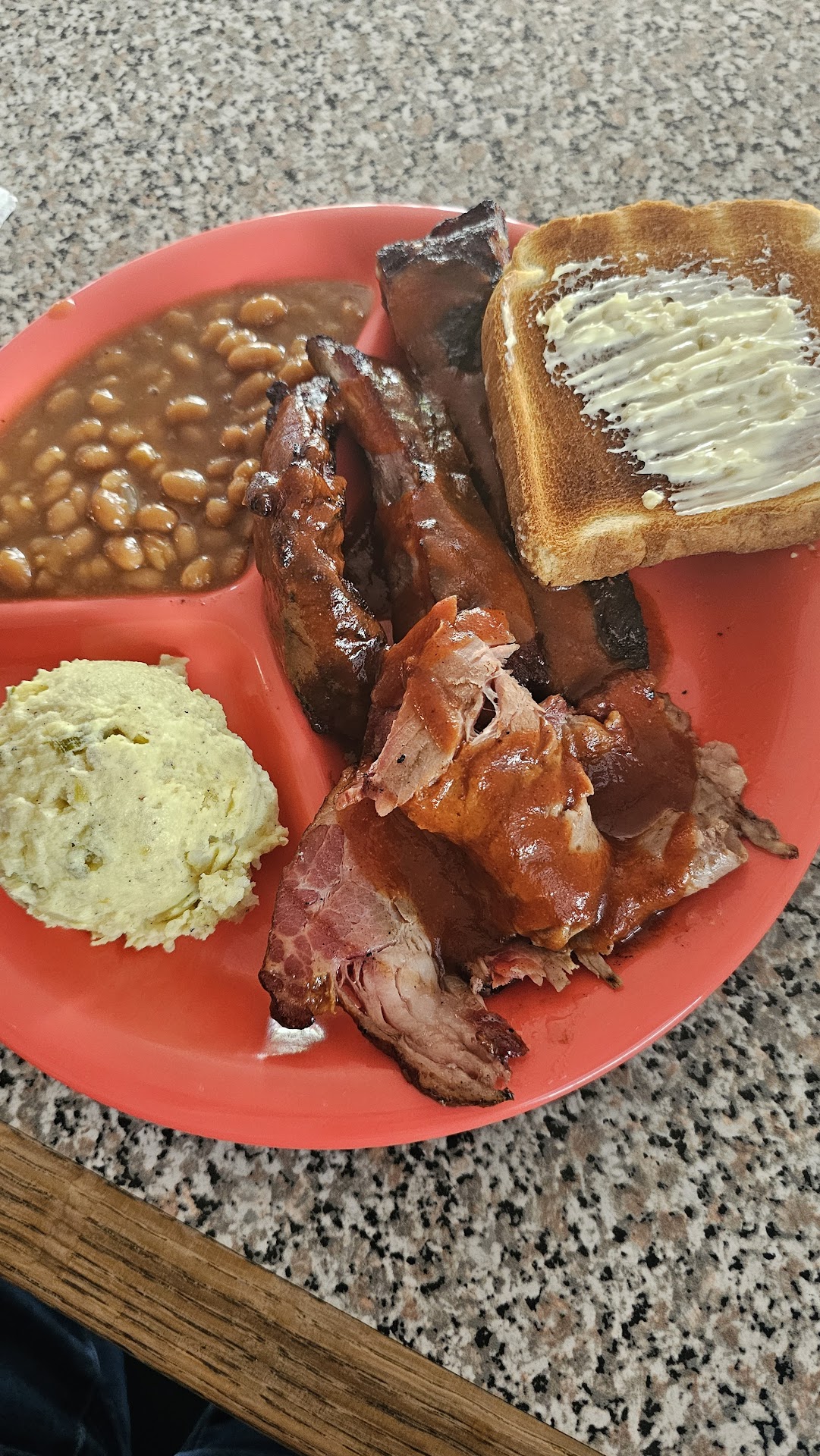 Read moreI really wish I could have been able to give a better review but that is impossible. After reading reviews my family and I decided to try the food here. First, I want to say that the restaurant is clean and the staff is friendly. Secondly, I know that the restaurant industry is suffering right now with the rising cost of food etc... but I can’t remember in my 50 plus years ever eating such cheap tasing food. I ordered 4 meals/dinners and 2 pies. The ribs were extremely fatty and tough, the sausage was greasy and filled primarily with fat and not meat. The potato salad was the consistency and texture of mashed potatoes with mayo, mustard, relish and dill. The baked beans tasted like they were poured from an old can directly into my to-go box...there was no baking/cooking at all. Since I can’t say anything positive about the pies, I won’t say anything at all. I love supporting small local businesses, but this is one restaurant that I will neither support again nor will I recommend it to others. I really hope my experience was isolated and that this restaurant turns out better food on...