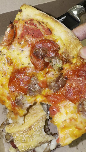 Went in right at closing and they had some slices still left over, however I wanted to order a pizza. I believe it was the owner who gave them the nod to make me a fresh pie. Thank you btw. I had to obviously wait for it to get made, so I went out to my car to wait. I observed their closing procedures and noticed how diligently they dusted every little corner. The place is spotless. Ok on to the Pizza review. We had the square thin pizza as recommended at the counter. The bottom was perfectly cooked well done. The sauce was not over spiced and they use a high quality tomato that me being Italian could appreciate. When I brought the pizza into my car, my family commented on how amazing it smelled. The toppings did not pull off when you bite into it and we all loved it! The pizza bottom did not get moist at the bottom even on the last few pieces, as I couldn’t stop myself from eating it. Yes it was that good!! Even after over eating I did not have that full stomach feeling, which tells me the dough was fermented properly. Great Job Guys!!!! I have to come back and try your Pasta Fagiole. BTW we also loved your...