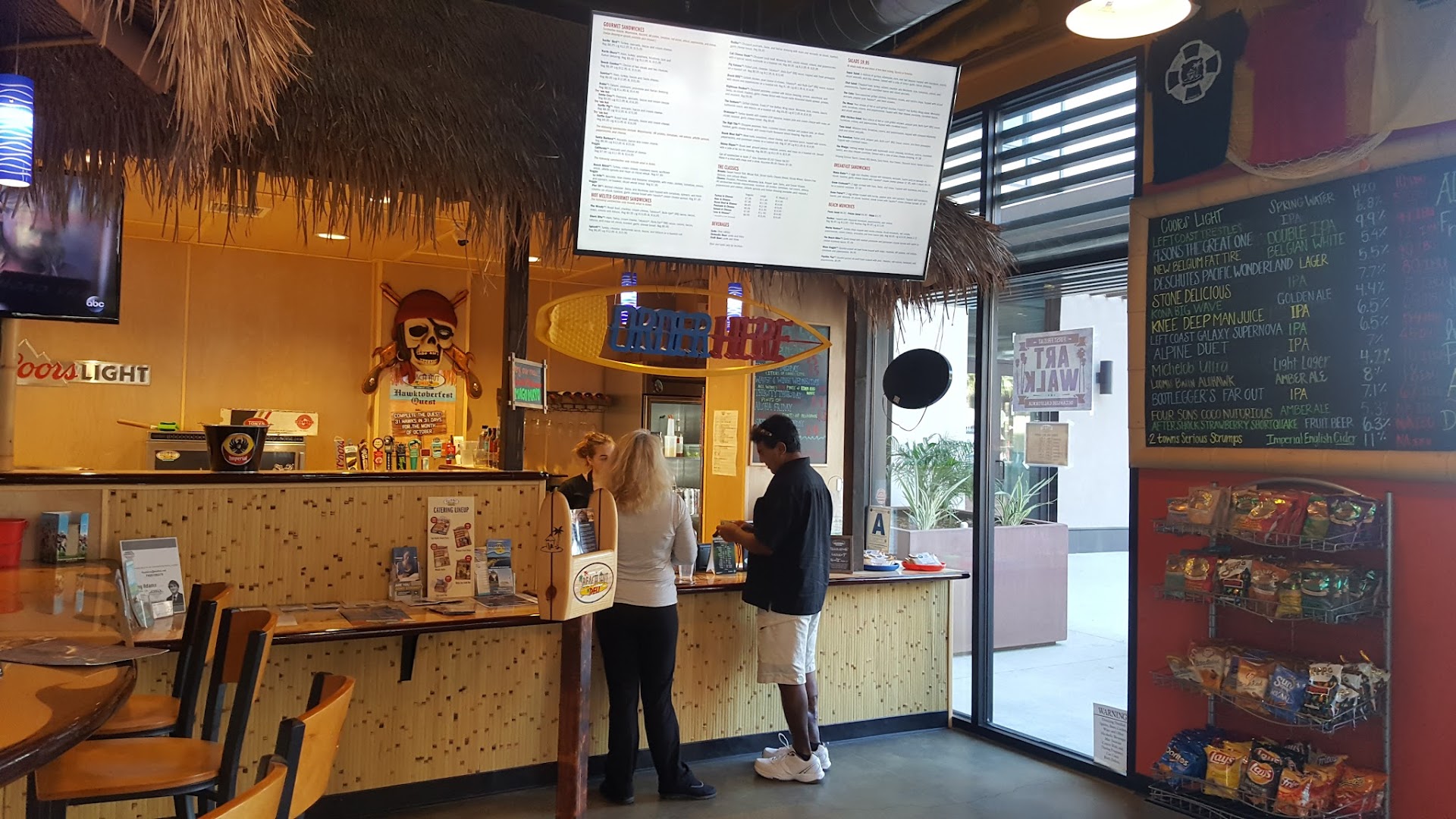 If you enjoyed my review please ive it a thumbs up and consider following me. My buddy and I sell steak, chicken and seafood off a truck across southern California, Nevada and Arizona, along the way we hit every dive bar, greasy spoon and habadashery we can find; I enjoy sharing them with you. I lucked out and scored a free parking spot directly across Cleveland St which was nice because finding a decent parking spot downtown can be hit or miss. There is a free parking garage one block south of Cleveland at 290 Seagaze drive if you are planning on grabbing a lunch, and the Beach Hut Deli is the absolute bomb. This was actually my third time eating here and the sandwiches are always amazing. I was craving a hot pastrami sandwich one day and when I searched google for one this joint popped up. I was beyond thrilled with what I got. This time around I was looking for a ruben and this was the first place checked, I din't need to google it, the browser in my brain went right there based on my previous sandwich. The place has a relaxed, laid back vibe with surfing vids and sports on the TV's and alt rock playing. The staff was fun, funny and cheerful as hell, how refreshing is that? Food service and dealing with the public is HARD work it speaks well of the owner/manager when the front line crew are well hired, trained and compensated so hats off to them for that. If you need to meet a client for a working lunch this...