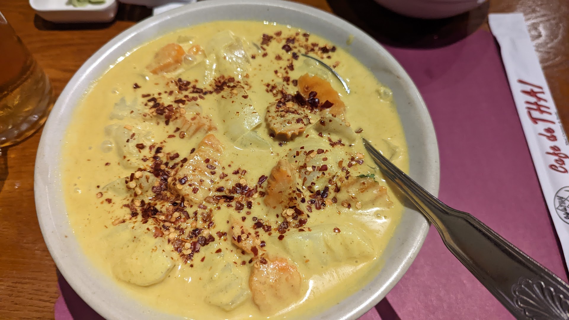 Read moreUnfortunately I have to update my previous review because Cafe De Thai continues to go down in quality. Today at lunch we were among the first to arrive so they were not busy. We placed our order and then waited... and waited. I kept wondering why they did not bring the salad and soup like they always do with the drinks. After some time they brought my entree, so I asked what about the soup and salad and was told they were coming. I put the entree off to the side since like most people I prefer to eat the soup/salad first. When it did come the salad had about enough dressing to cover one piece of lettuce. The soup was good but boiling hot. When I finally got to my entree it had cooled off and I noticed it seemed underdone. No grill marks on the chicken, the broccoli was so hard it could hardly be eaten and the noodles were totally undercooked. Not once did anyone come by to ask how our food was or if we needed anything. Finally we flagged the server and asked for boxes. She did not ask how our meal was or anything else, so just a complete service failure. This used to be one of our fav Thai restaurants but I doubt if we will go back...