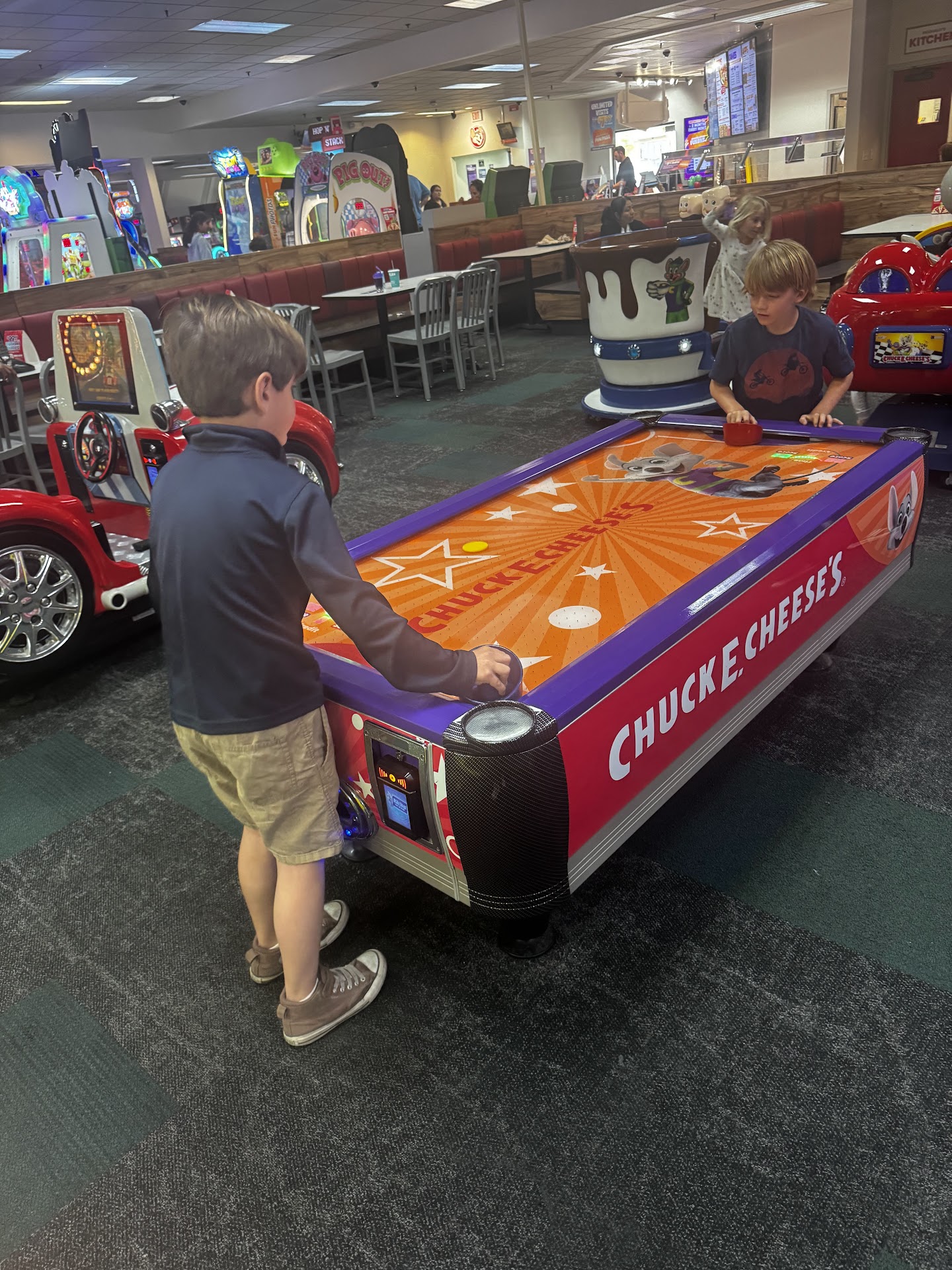 We went there today for my daughter’s birthday. We go there on every single birthday for each of our three kids plus several play dates throughout the year. I will have to rethink that. Today was very disappointing. We got there at 12:25 and was excited we made it there in time for Chuck E’s 12:30 performance. Only problem was, he didn’t come out. We waited several minutes before having to track down the manager and ask. She made it happen but he was about 15 minutes late. My husband and I got the buffet. They had three dinky pizzas out with some lettuce. That’s it. For nearly $9 per person, there needs to be more there. My daughter was excited when I won her 100 tickets on Whack-A-Mole. She said “Yay, now I can get ten tootsie rolls”. We were shocked to see that all the prize values went up. And pretty drastically. Our favorite prize (long tootsie rolls) went from ten tickets each to SIXTY tickets each! Such a bummer! Only one of the five ticket machines was working. I asked the young girl behind the counter for help twice with those but she completely ignored me. I had to track down the manager. Our time there was far more frustrating than fun. When you spend that much money trying to show your kids a good time and you run into multiple issues, it really stinks. The manager seemed really huffy with the young girl too which wasn’t fun to witness. We will likely try the Vista location or Dave and...