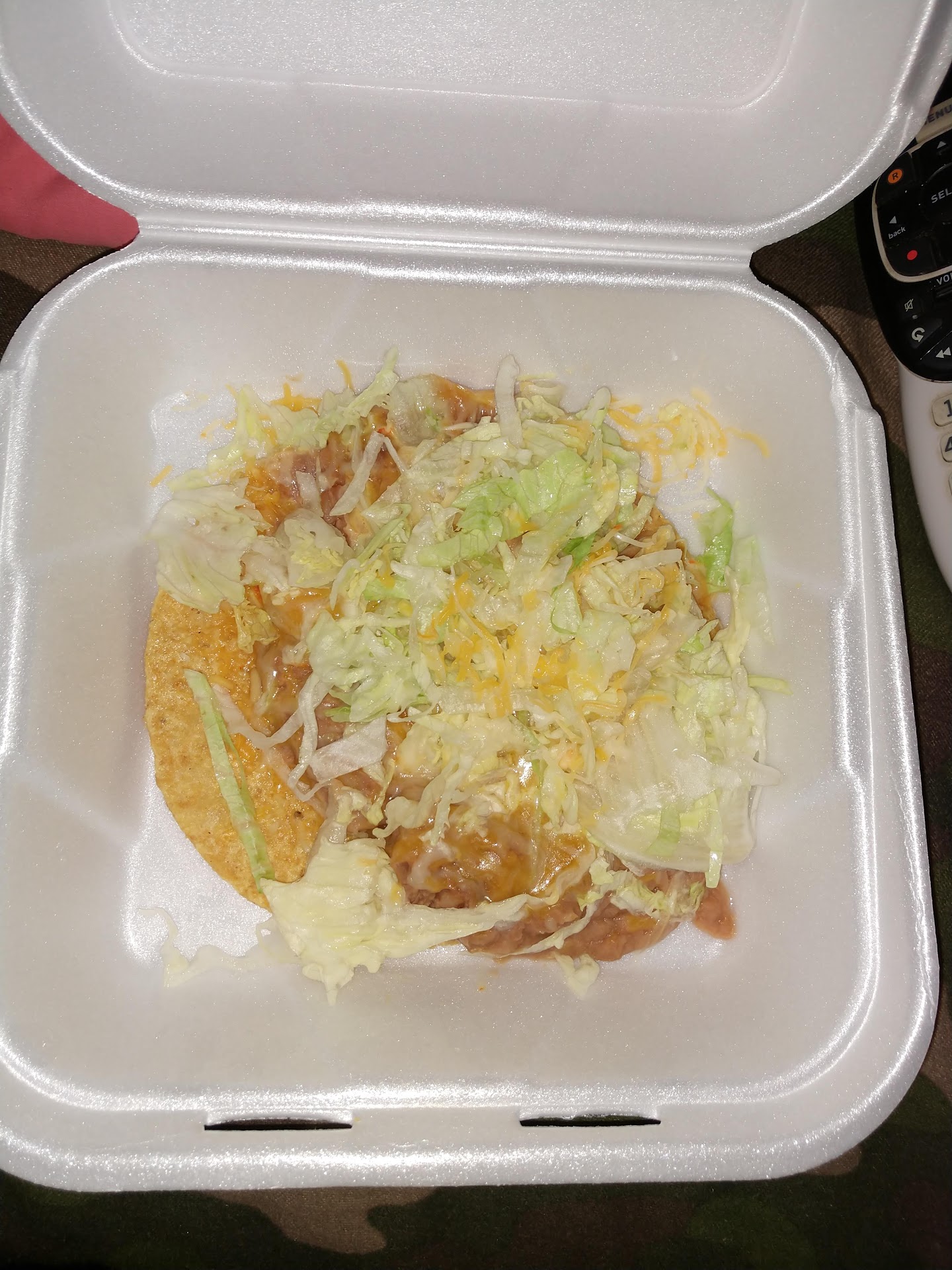 I ordered a bean tostada and this is the saddest bean tostada I've ever seen. I came here out of convenience because it's close. I stopped coming here a year ago I don't know why I came again today. They're not real friendly in there, I had to ask three times for the hot sauce I wanted. And then this Bean tostada is just... Terrible. I'll just go the extra quarter mile from now on to Alberto's. I know better. This Bean tostada is actually my fault. I'll never come here again.