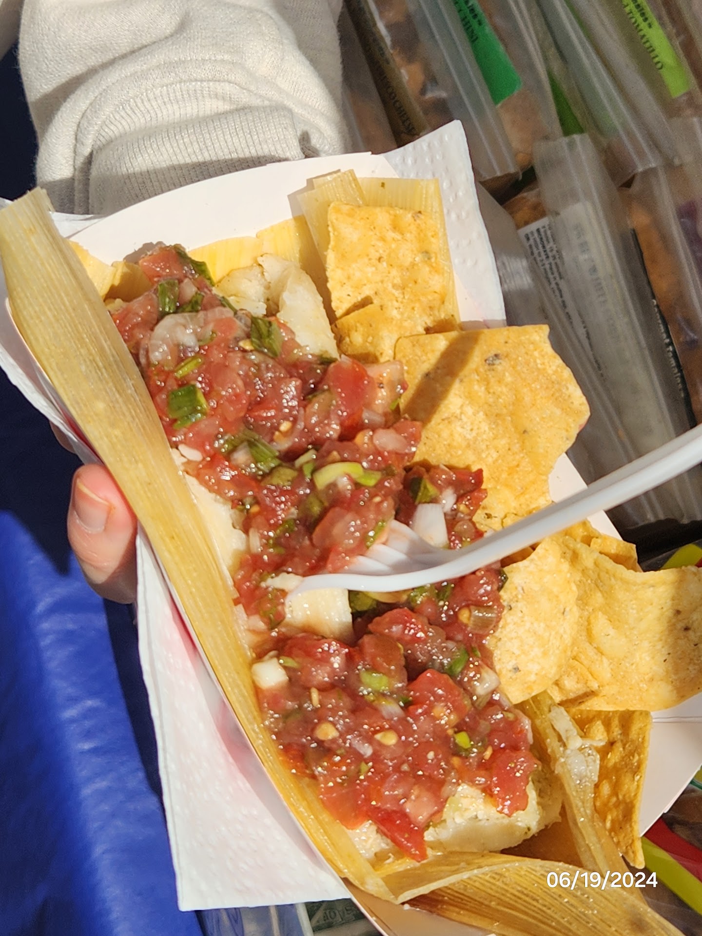 Either way, vegetarian-friendly as she does cook in lard but the meat options are still delicious. The masa is smooth and soft but holds its shape well. Comes with free chips. If you buy 3 frozen, it is cheaper. Goto for lunch at the farmers market.