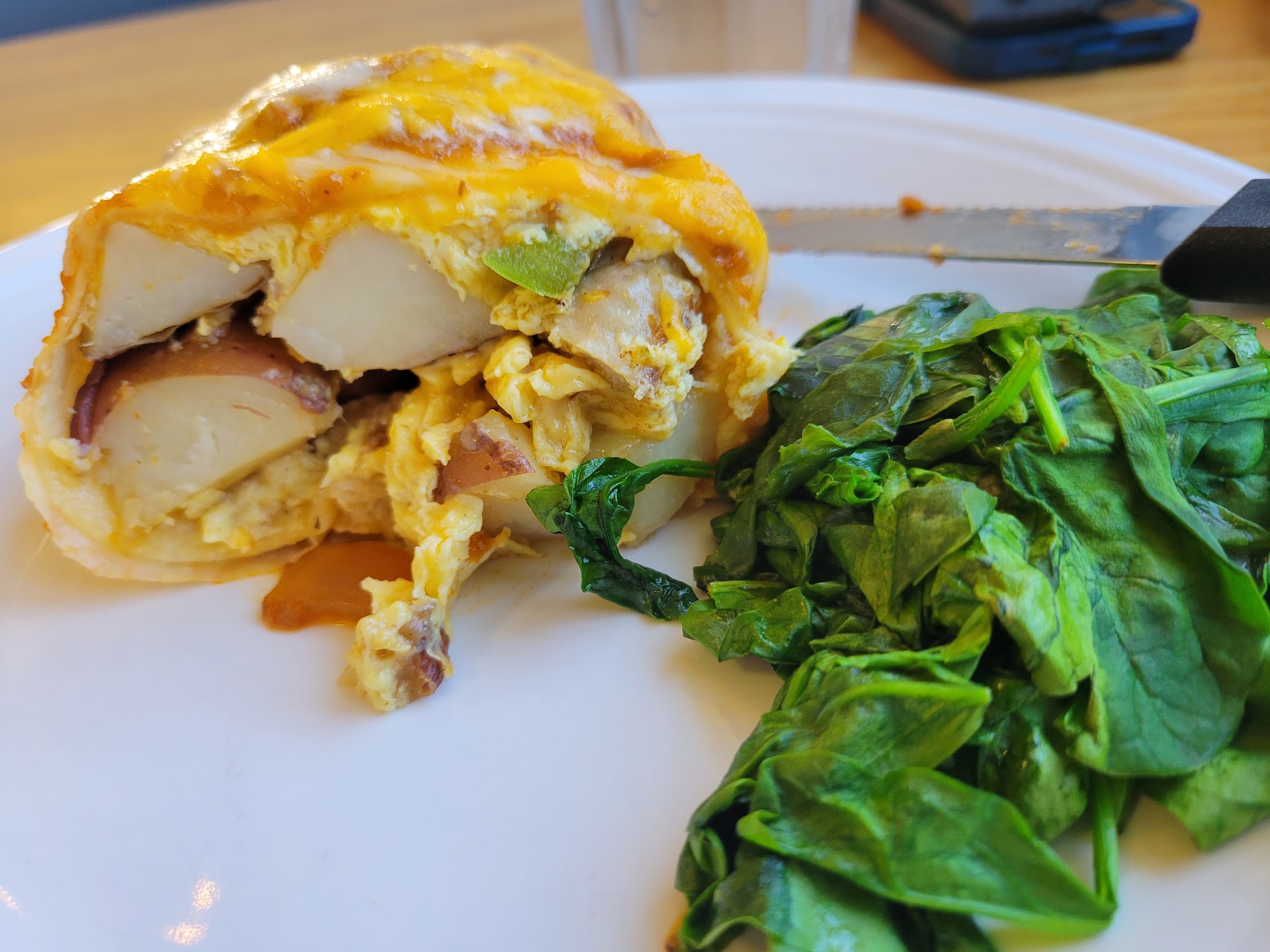 I ordered the Western Omelette with the home fries and coffee cake. The coffee cake was a bit smaller then I expected but the quantity of potatoes and omelette completely made up for. The home fries had the perfect balance of flavor. No salt or ketchup was needed as they were perfect as prepared. The omelette had a decent amount of cheese that was baked on it. It was so much so that it made the omelette a little dry but one you spread the sour cream that’s provided, it’s delish.