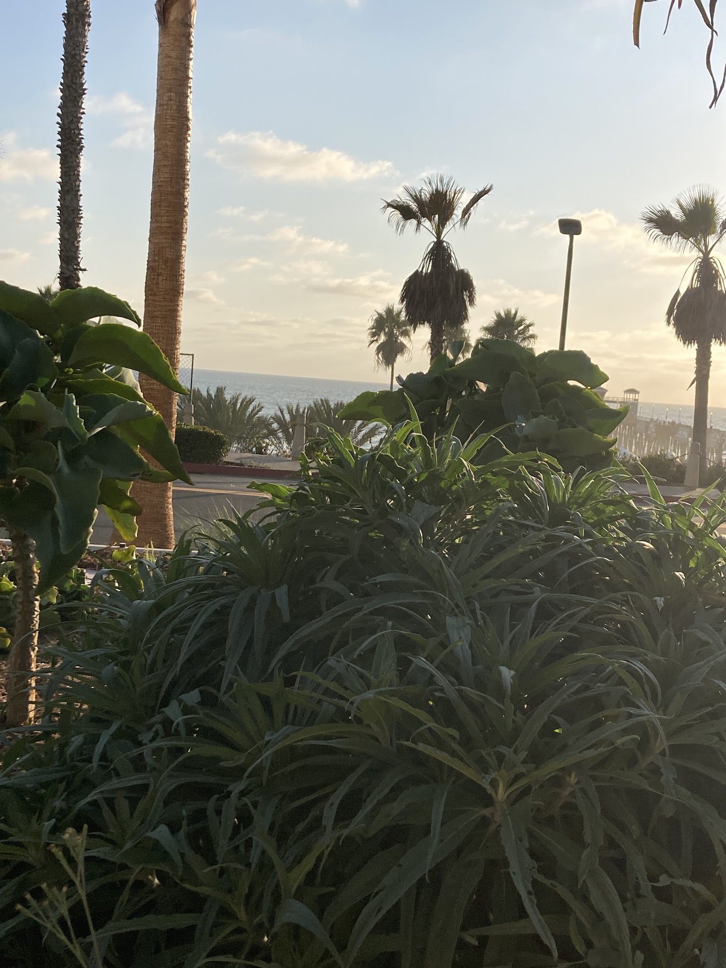 Today we enjoyed sitting outside. It was a perfect combo of sun and shade provided by an umbrella and ocean breeze. We sat sipping our refreshing corpse reviver drinks while having a full view of Oceanside pier, and surfers riding waves. The only thing that would make it better might be in the evening, the 4th, or any holiday providing beautifully light streets and buildings.