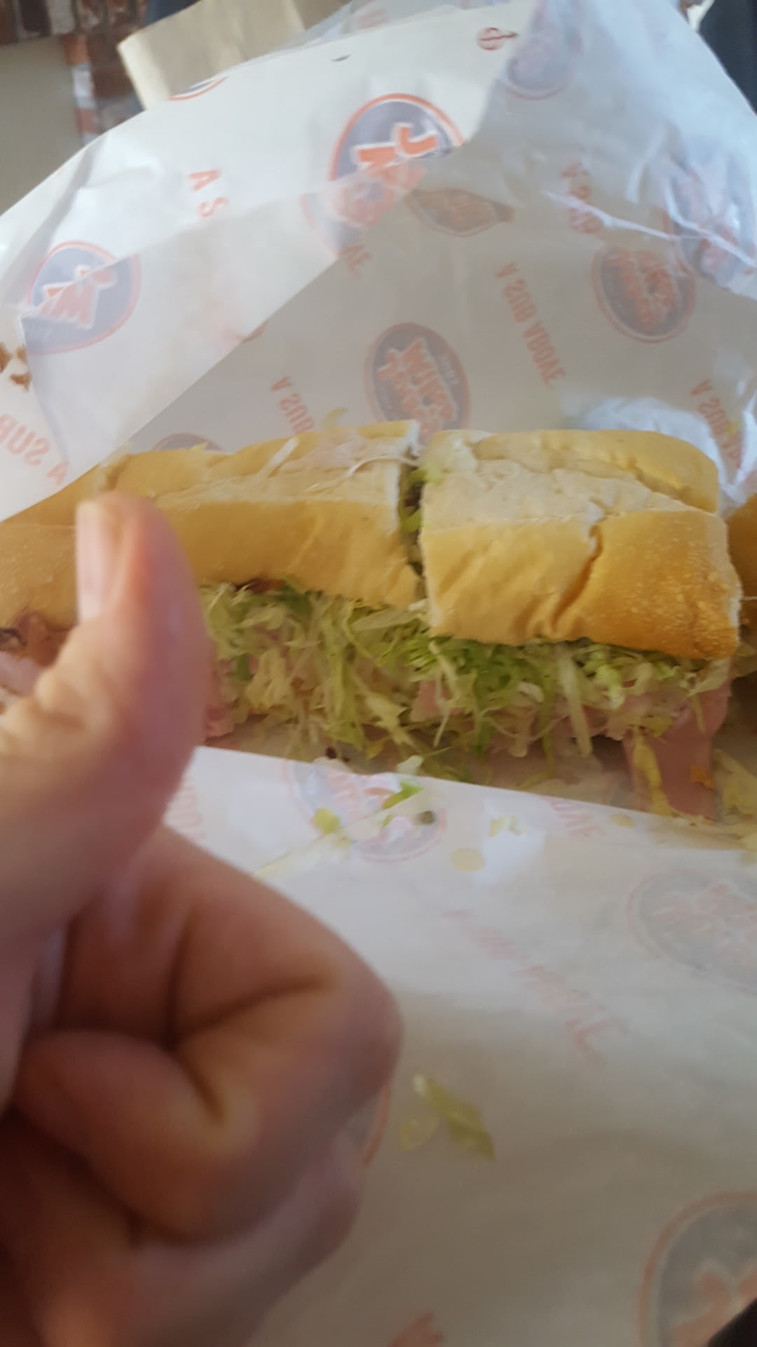 So everything about Jersey Mike's food is great! The staff was friendly and place clean. But I didn't give 5 stars on service because for years they would ask if we wanted our sandwiches cut in half, etc our we would ask for it. Not here. Not only did they serve them while, but when we asked for them to be cut, they said they don't do that. It was everyone in our group. They did after us asking again, and we did so very nicely. Some in our group were timid about asking and we are all over 60 and we realize the young folks don't want to deal with us and it would slow down the very short line but when sharing a footlong or a ½ it needs to be cut. They staff wasn't rude, but they simply said they don't cut the sandwiches. So it made more work for them because they wrapped and bagged it, and then after I brought them back up to the counter, they had to unwrap, etc, to cut and then wrap all over again. It was silly. There were 5 workers there, so they weren't short staffed and there were not people waiting in line. So this was a really off day maybe but I hope they aren't really considering the move to not cut sandwiches for...