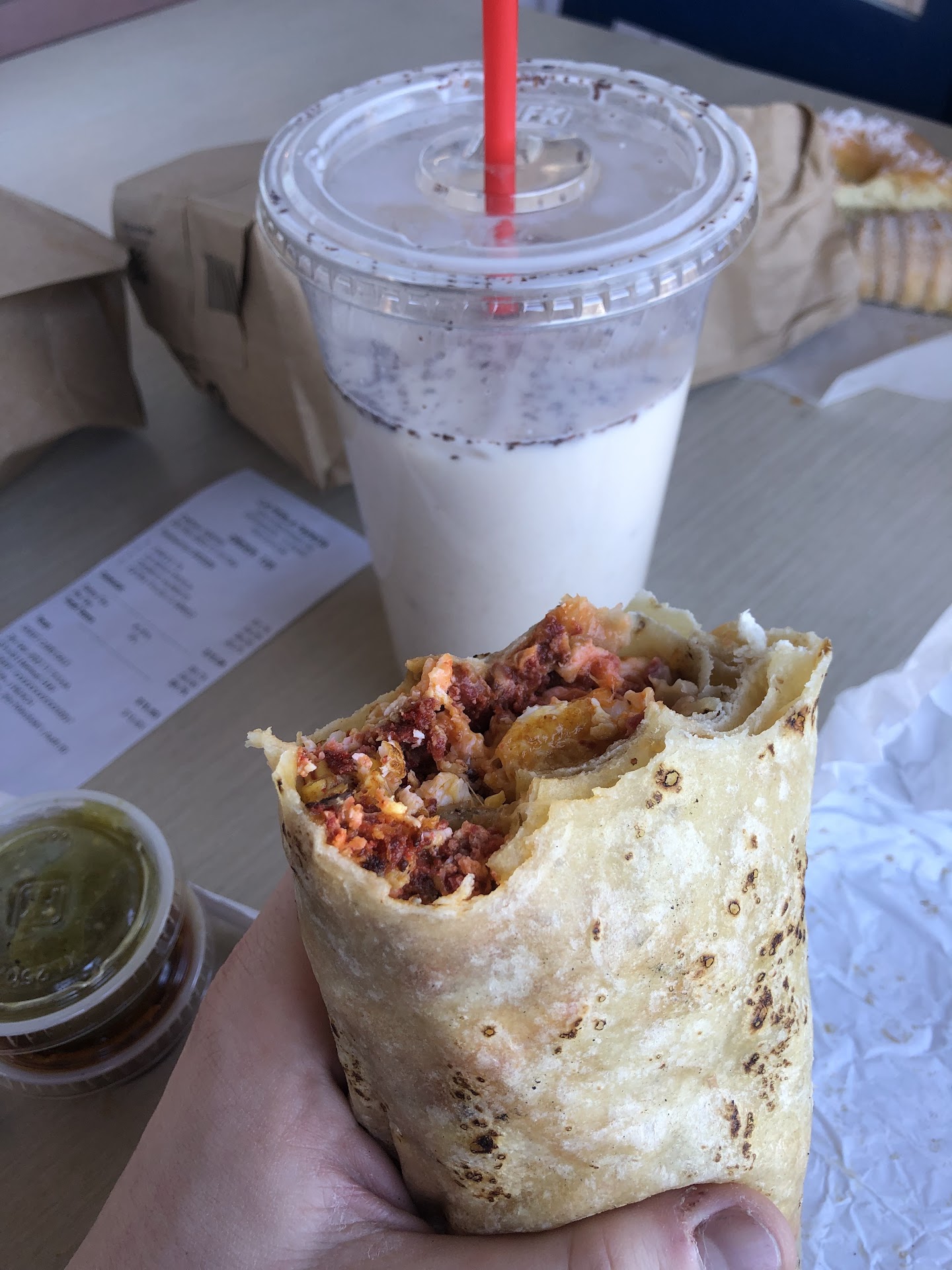 my first time in i wanted to try a lil bit of everything. so i started with a shrimp burrito and it was top tier! when they ask if everything is okay, answer yes. had the green salsa with it and it was just right.