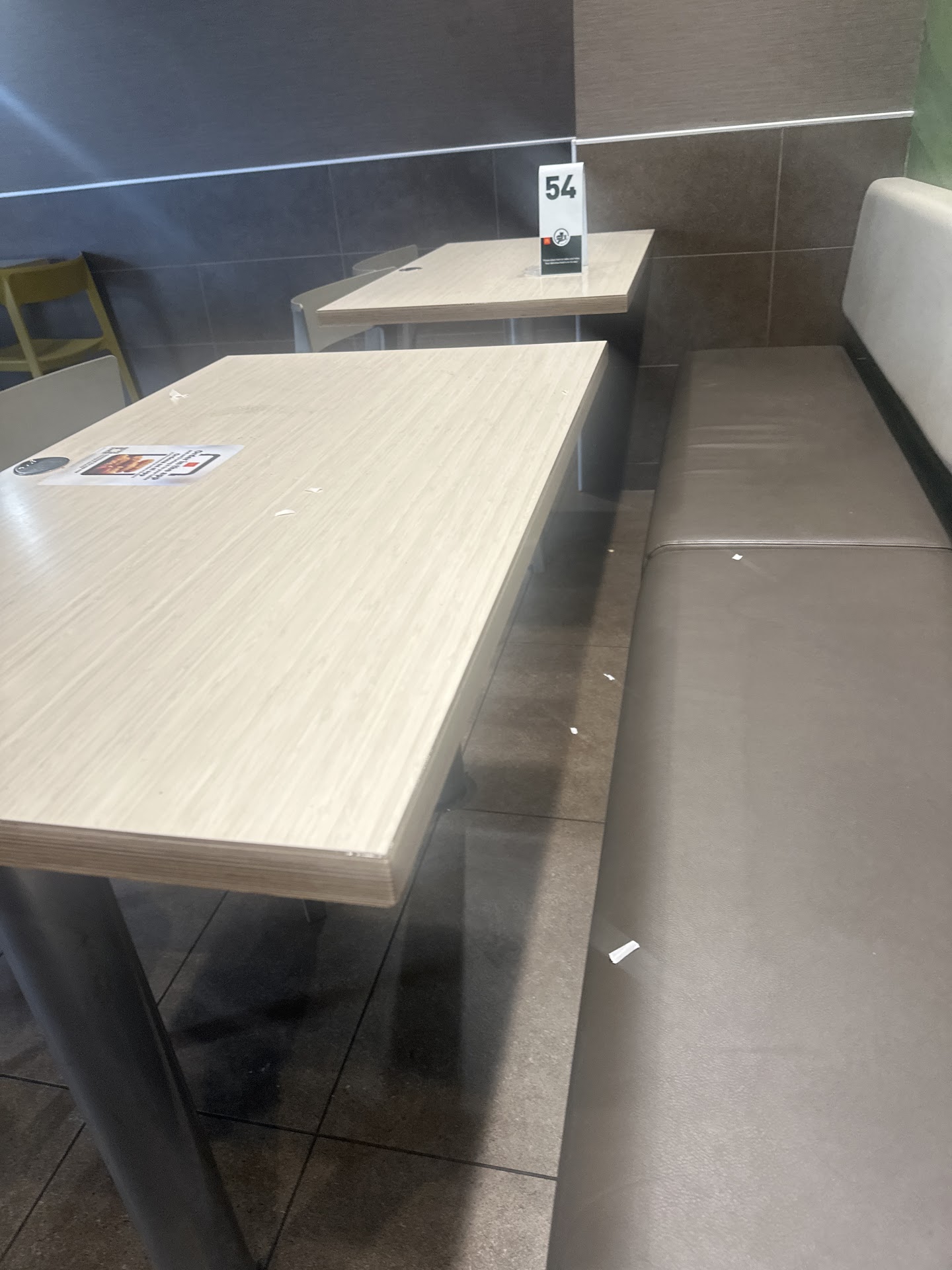 This has to be a sign of the times, the staff totally ignores you at the counter, like completely, even when your order is ready and they set it on the counter (they don’t bring it to your table despite the kiosk having you pick a table tent) no they just set it on the counter and half the time they don’t even call your number, they turn around and get back to whatever else they are doing. Your drink cup is never on the tray so you have to sit there saying excuse me, excuse me until finally someone pays attention to you, and you better get whatever else you need ketchup, napkins bbq sauce then because that’s your chance. Turn around to the drink station, the Coke fountain on the far right has been out of calibration for almost 2 months (too syrupy) and it’s always a mess, makes you wonder if they clean it at night at all. And the ketchup pump is always empty and the lids aren’t stocked, and napkin dispensers empty. Food and trash all over the floor and tables not wiped down, and mind you this isn’t a one off, it’s like this every time I go and I go once a week because it’s a treat for my son and it’s his favorite place (he’s 6) so for being a good boy I let him pick….. it’s torture for me, but he likes it because he doesn’t know any better. McDonald’s was always clean and friendly staff I don’t know what the heck happened in the past 5 years, and the drive thru, they love to park you even if there’s nobody else in the drive thru, like can’t I just stay here what the heck!!??? At least the...