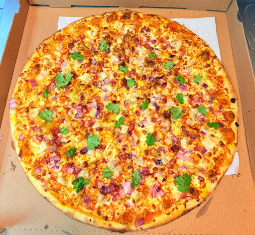 Good and bad here. The good is the pizza tastes fine, lots of flavor. However, I just moved here from NYC. This certainly isn’t real NY pizza. For example, NYC pizza does not use corn meal on the bottom of the crush. this place does. Also, the slices are cut too skinny to be folded, the way we eat them in NYC. The BBQ chicken pizza was pretty decent and superior to any BBQ chicken in NYC (they don’t know how to do good BBQ chicken pizza in NYC).