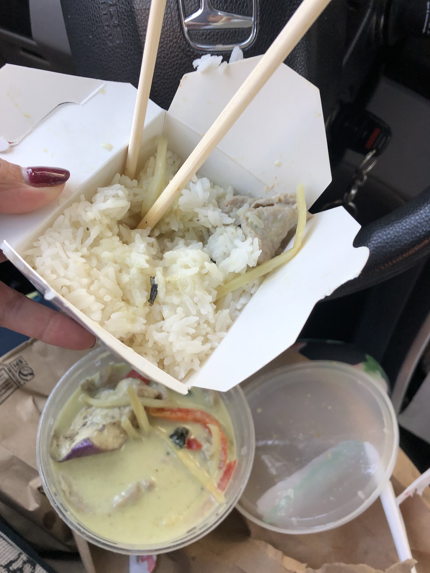 I have been going to this restaurant (both locations) for almost two decades it is a favorite. Food and atmosphere perfect every time. This is the first time I am writing a review. I rarely write reviews good or bad! If I could put service at negative 5 stars I would! I popped in on a whim, missed lunch menu, no problem, ordered off the regular menu. Pork green curry. I sat down assuming she knew I was staying. When she handed me my food in bag. I explained I wanted to eat it there because I would have to eat it in the car and she told me that I couldn't eat to go food there and offered no other option but for me to eat it in my car even after mentioning I don't live around here. I have a 45 minute drive home as I do not live in the area but am in the area multiple times a week. I'm writing this between bites in my car... livid and now too upset to finish my food because who wants to...