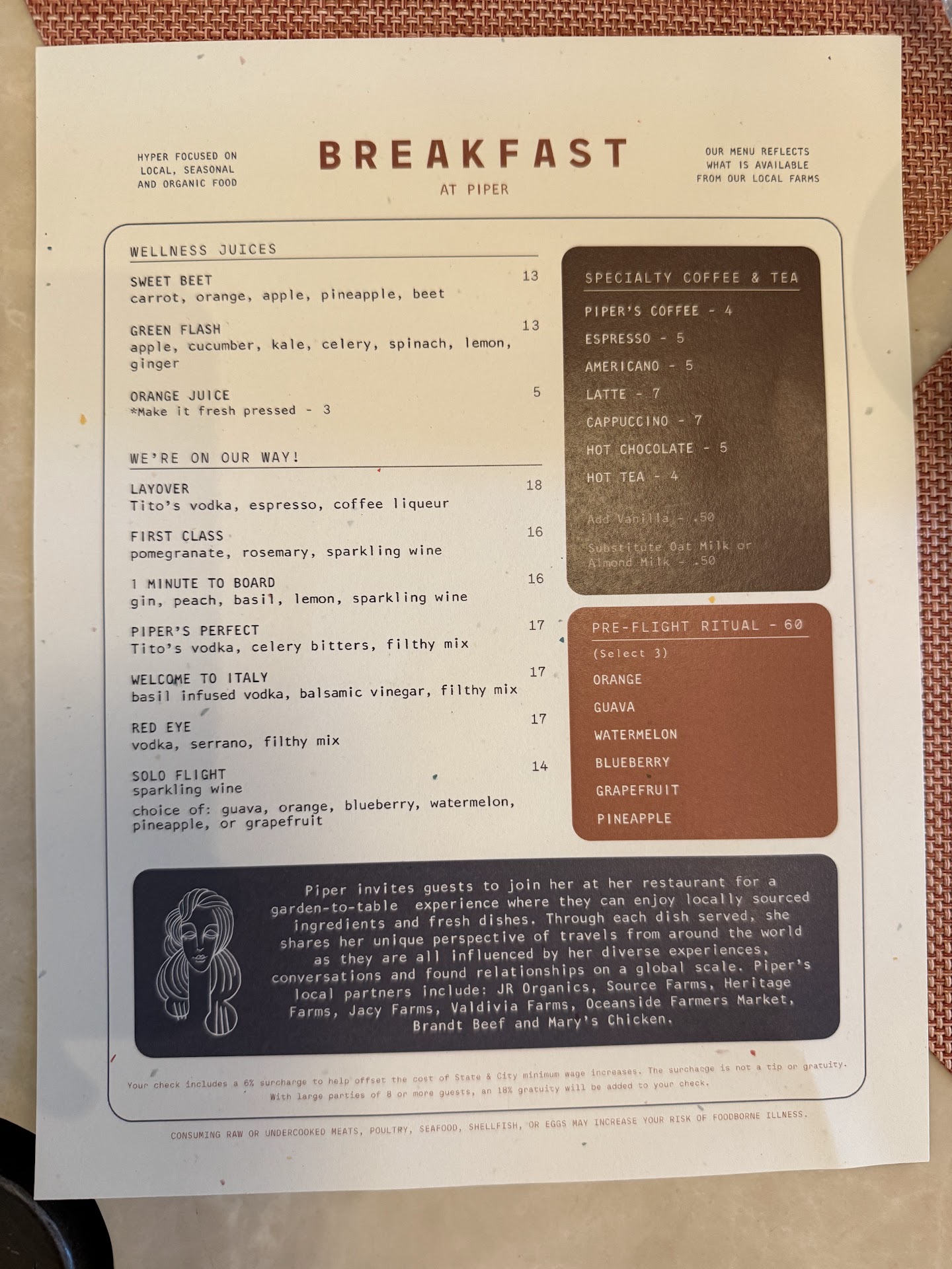 Read moreArrived early for our brunch reservation on a Sunday that was rated "less busy" by Google Maps. Sure enough, there were a lot of tables open, but the host informed us they needed to clear up some tables, so they would text me to let me know my table was ready, and if not texted by the reservation time, that I should come back to the host stand.