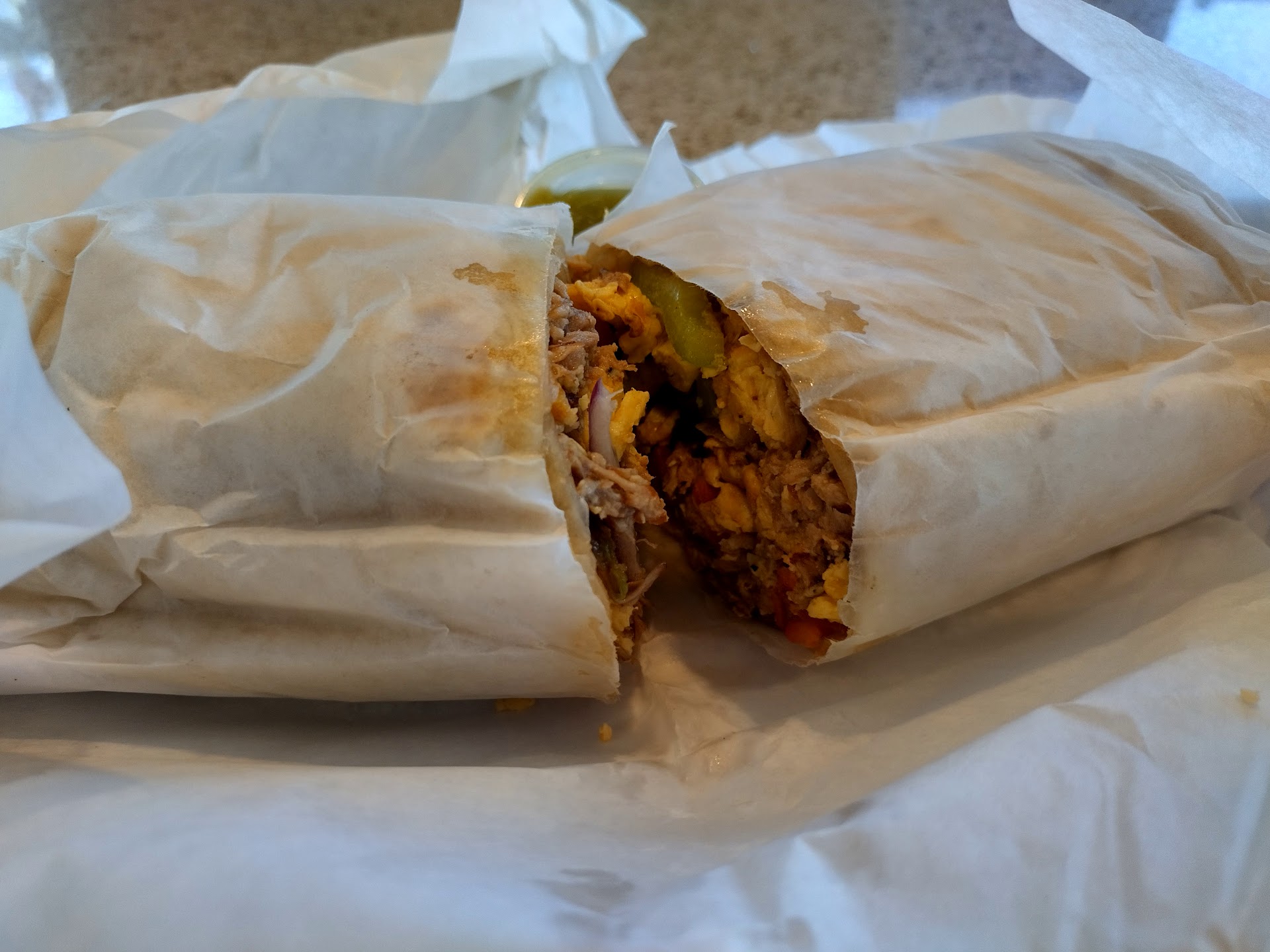 My Machaca Breakfast Burrito was humongous, & tasted super š! I could only eat half this monster, but I look forward to polishing off the rest tomorrow. My wife liked her Sausage, Potato & Cheese Breakfast Burrito, as well. They were a good value too, with 2 š-sized breakfast burritos, for under $20.