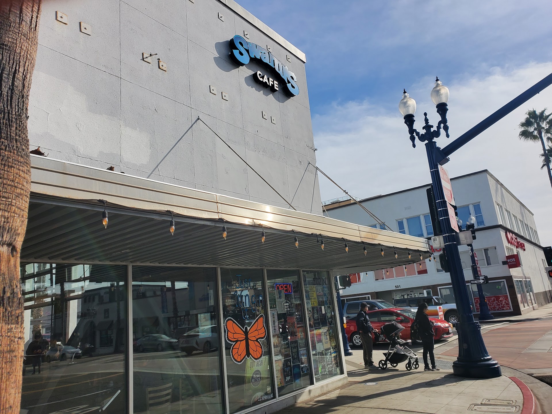 Visiting California on a recent excursion, I found myself with my teenage daughter, driving through Oceanside in search of a good meal. My kiddo is vegetarian, so I needed a place that would serve her dietary desires. The solution to our needs was Swami’s CafĂ© in downtown.