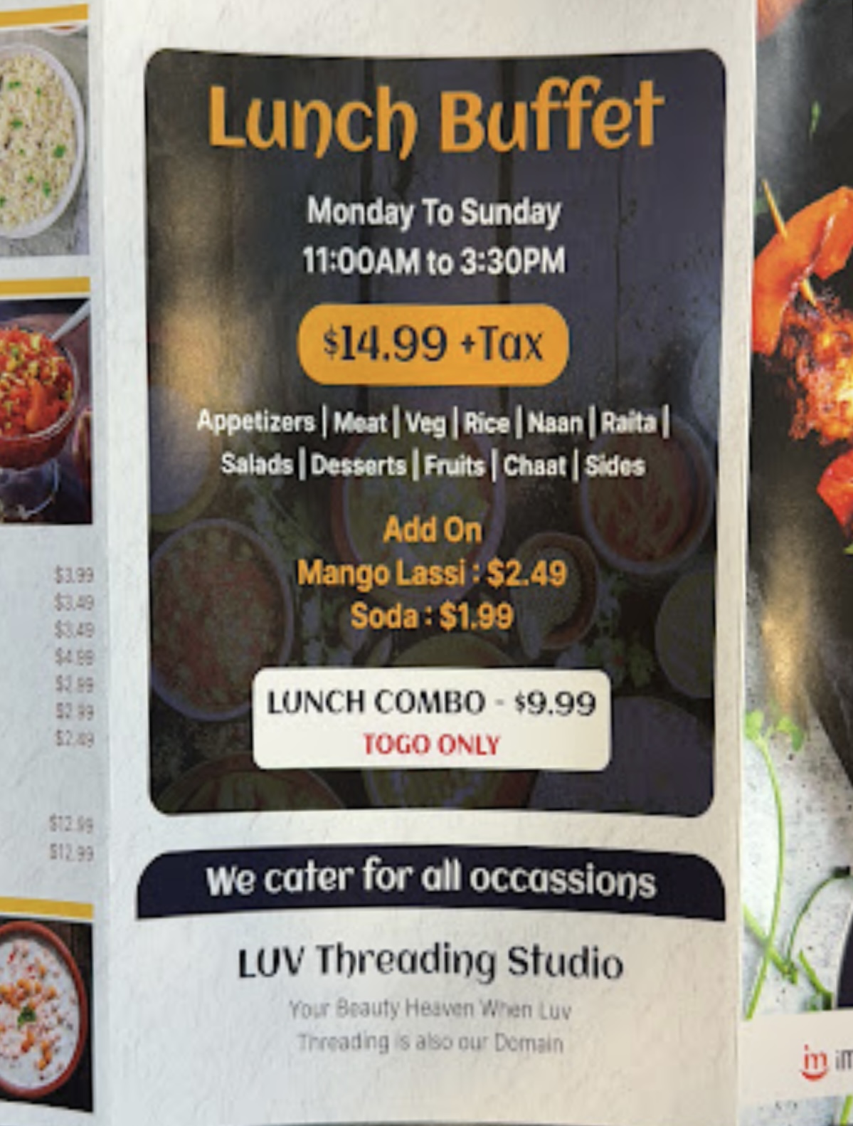 They also have mango lassi and an assortment of other beverages to enjoy and their menu is growing.