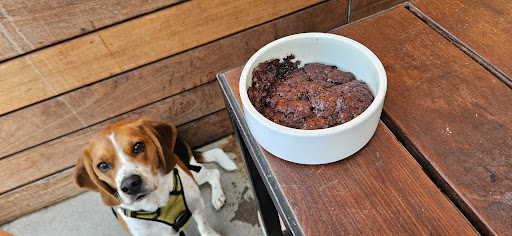 Ambiance - A group of 8 of us came in on a Saturday night for dinner. We already saw a line when arriving, but it surprisingly didn't take long. Seems like the line goes by faster than it looks. They hand out menus while in line so it speeds up the ordering process. Finding seats was a little struggle because we're a large group and you can't sit in the next door's establishments' tables, but we managed to get 2 tables next to each other. I love that they're dog friendly and they even have a dog patty option!