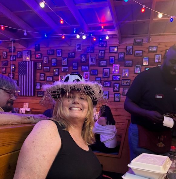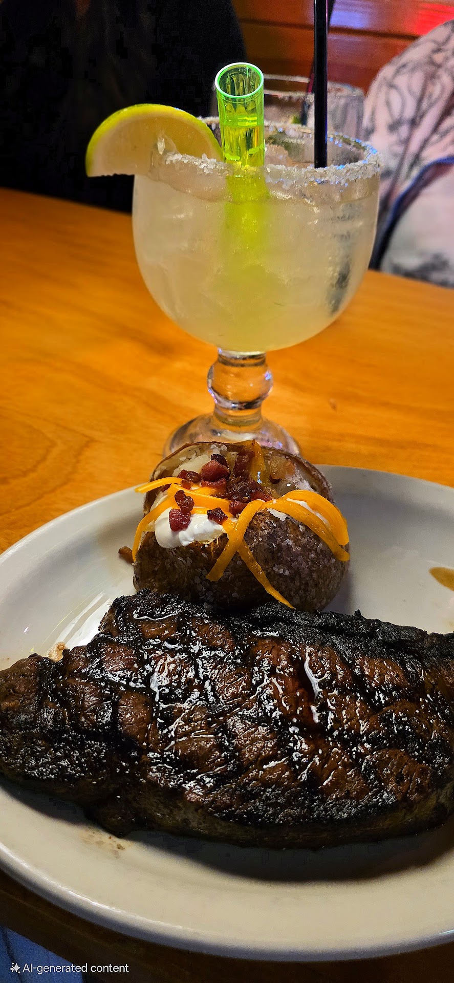 Read moreFirst-time customer! Sadly, I was an Outback steak girl, but they closed the restaurant close to us. Everyone was telling me that over the years, you should go to Texas Roadhouse (TR). But since it was my birthday and it was a steak house, I thought I would try it. They did have one of my favorite appetizers ---Fried Pickles. Don't ewwww me! The crincht outside with salty dill inside and ranch to dip in. Heavenly! I ordered the NY strip(large because I wasn't paying for it) sides salad and everything mashed taters. Salad crispy and crunchy, with carrots, tomatoes, croutons, and more ranch! Steak perfectly med rare. Superb. I was almost afraid to cut it, but I had a job to do. And boy did I. My hubby kept stealing my taters, so I kept twisting my plate further and further away from him. I made it seam like it was a better angle to cut my steak. But it worked. Remember that to all of you who have gotten your plates picked! Then, at the end of the meal, they pushed over a saddle mounted on a rocking horse and put a white dangley cowboy on me, and asked if I wanted to ride. I know my kids were up to something because every time someone even looked our way or brought something to the table, they all said, "It's her birthday." So I said absolutely, then my kids were concerned. "Are you sure?" "You might get hurt, " "Maybe just sit on it," but i usually do what they least expect!!! Then they were taking pictures, and the whole place was singing Happy Birthday (well, maybe not the ones outside waiting for a table). There are pictures. My daughter could have warned me not to wear a dress if I was going to do a ride, but fortunately, it was a long dress, so only the lower parts of my leg showed. I was more concerned with how many heads that hat had been on. But it looked very clean, and the waiter put it on and took it off, so I guess human contact was minimal. But everyone had a great time, had great food and looking for the next big occasions some can go there again. Fantastic servers at bar and tables. The empty tables were quickly cleared for the next guests. I would highly recommend TR. In fact, I am getting hungry just writing this. Might have to pick a fight with the hubby, and we can make up by...
