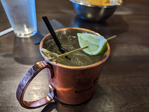 I arrived without a reservation on a Sunday evening. I thought there would be a wait, but I was seated immediately in a booth. I was given chips and salsa pretty quickly. Then my waitress asked for my drinks and food. I noticed that I could do a Mule with mezcal instead of vodka, so I went with that (11 dollars). I also asked about whether the chicken fajita quesadilla (17.50) would be filling and she said yes, so I went with that for my entree. My drink came quickly. It was quite refreshing with a great ginger flavor from the beer and liquor. However I think it overpowered the mezcal as I didn't notice the smoky flavor as expected. I also didn't notice much alcohol until the end, which was quite boozy afterwards. Still, it was a pretty good drink. What really surprised me was that my quesadilla also came pretty quickly. Thus, I was pretty sure the chicken fajita and veggies must have been premade. The chicken was a bit chewy and lacked the grilled flavor that I hoped for. However, the veggies made it up with the green bell peppers and onions. There could have been a bit more cheese inside the quesadilla, but overall it was above average and filling as promised. I asked for double rice instead of beans and the rice was satisfactory. It also came with sour clean and guacamole, which I enjoyed.