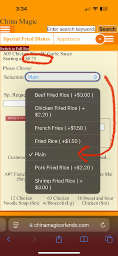 Loved their food but this last customer service experience will not have me coming back. I had already had a disagreement with the lady about the online order and let that go at the time of pick up but when I got home and was missing an item and called back to informed her that. she said no, that my order of garlic wings did not come with plain rice and it would be an extra charge from the special. I try to inform her it clearly states that online and on the order page that, plain rice is part of with my garlic wings order. She never acknowledged the mistake of using the online order nor apologize or offer a solution. After not being able to get my point through I hung up on her and loss my lunch...