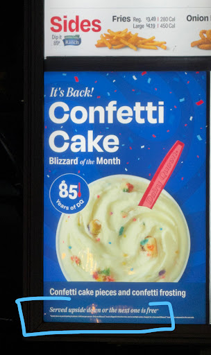 Read moreIâve been here two times and have been extremely disappointed both times. The first time was a weekend night, I ordered shrimp basket and they forgot the shrimp sauce. And I ordered a medium blizzard, and I might have well ordered a small because they only put the topping 1/3rd of the way in, and didnât blend it all in whatsoever. the second time was a week day, and I order a small sundae with butterfinger and jimmies(Sprinkles). I might as well just ordered no toppings because they skimped on toppings, majority, both times. And both times I was waiting in drive thru line for forever. If you want more toppings and food to come with everything, go to culvers instead.