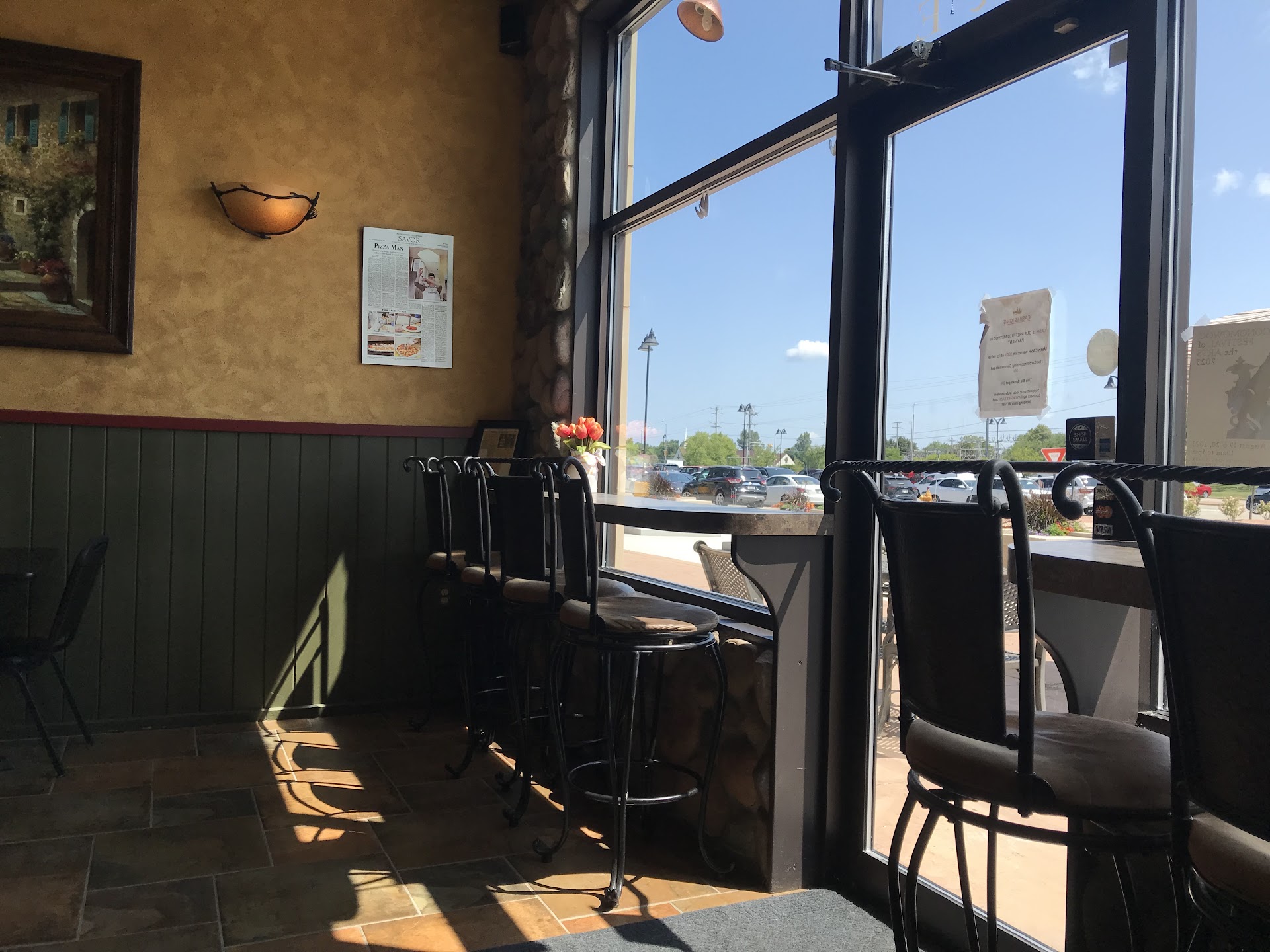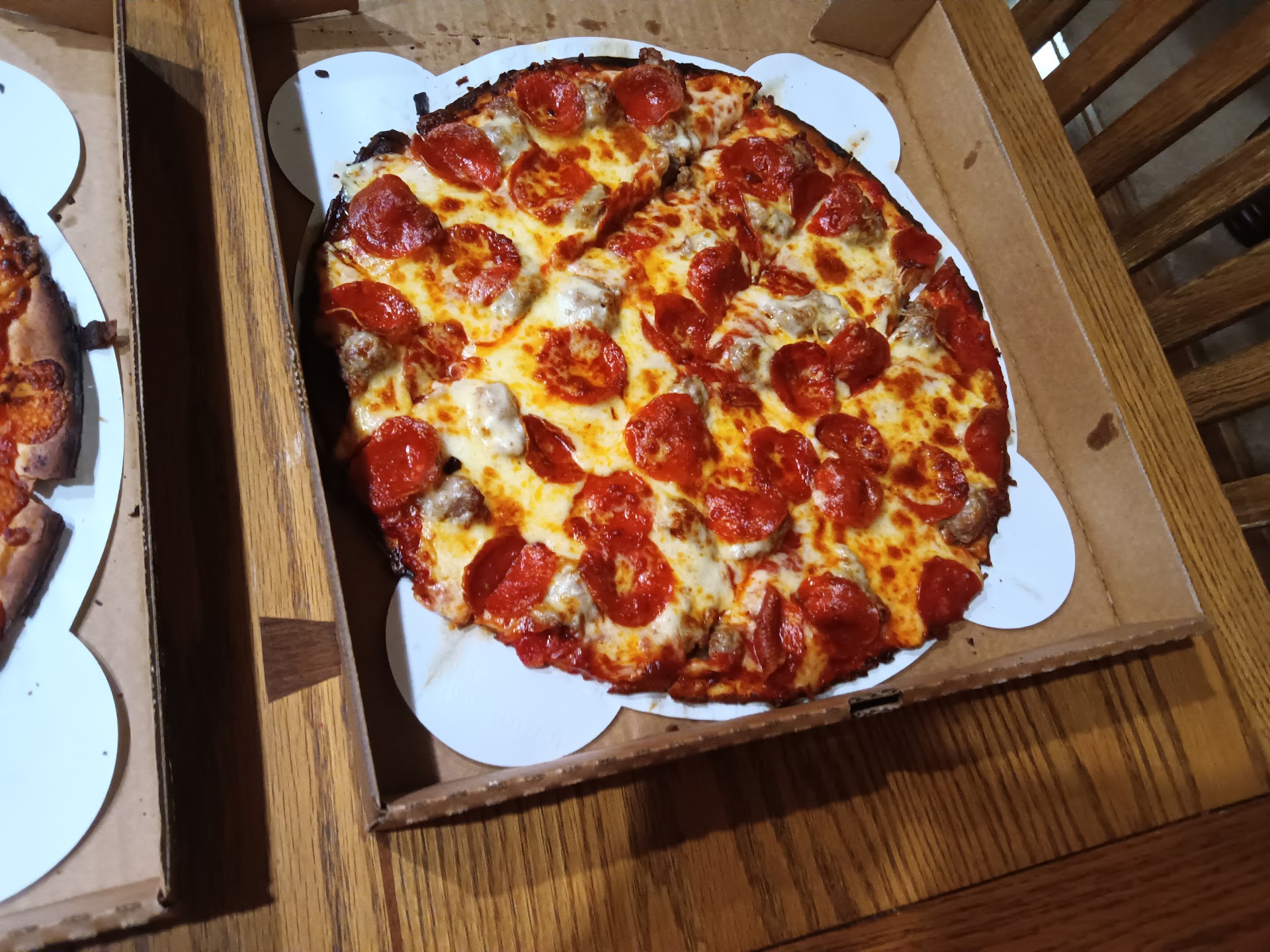 Read moreWe were disappointed, I had saw other amazing reviews so we thought we would try it. The breadsticks were burnt black on the bottom and on the edges and we ended up throwing them out. The boneless wings were good but the wrong favor we ordered honey BBQ and these were not. The cheesy garlic bread was wonderful and everyone wanted more. The pizza was alright we got a large sausage, pepperoni, mushroom, onion, and bacon. The hand tossed crust was burnt around the outside but It seemed a bit undercooked in the middle the favor was ok, but probably not a place I would return to. The couple of tables inside were dirty from previous diners and there were napkins...