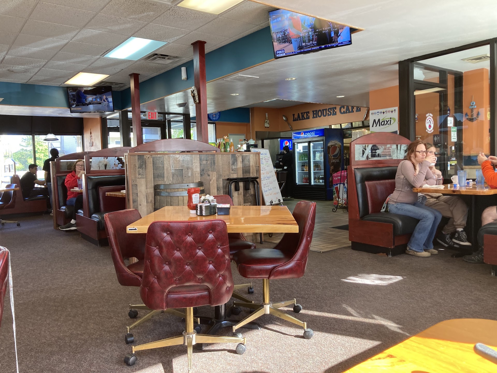 Read moreWe were aware of this place for awhile but didn't stop to eat till now. Pleasantly surprised, the interior felt a little outdated, but not terrible. That's my only negative though, the staff was friendly and attentive. Our server was a very nice, my husband asked for recommendations and he gladly talked about the menu and what he really thought was best. The food was fast, fresh and tasted great. It was calm and relaxing while we ate. It was very clean and comfortable, tables with chairs as well as booths to pick from. We visited around 11am, there were about 1/3 of the tables in use, and everyone was greeted quickly, and given the same service we received. Bathrooms were clean too, plenty of parking. We are regulars at Kowabunga Comics nextdoor, so we'll be adding Lake House Cafe to our visits. Today we tried the Friday fish fry (Perch), got 3 good sized pieces of fish, came with a cup of soup or salad, choice of potato, a roll and coleslaw. Our server said on Fridays you also get a free beer with a fish fry, but I declined. We also had a corn beef hash with scrambled eggs and...