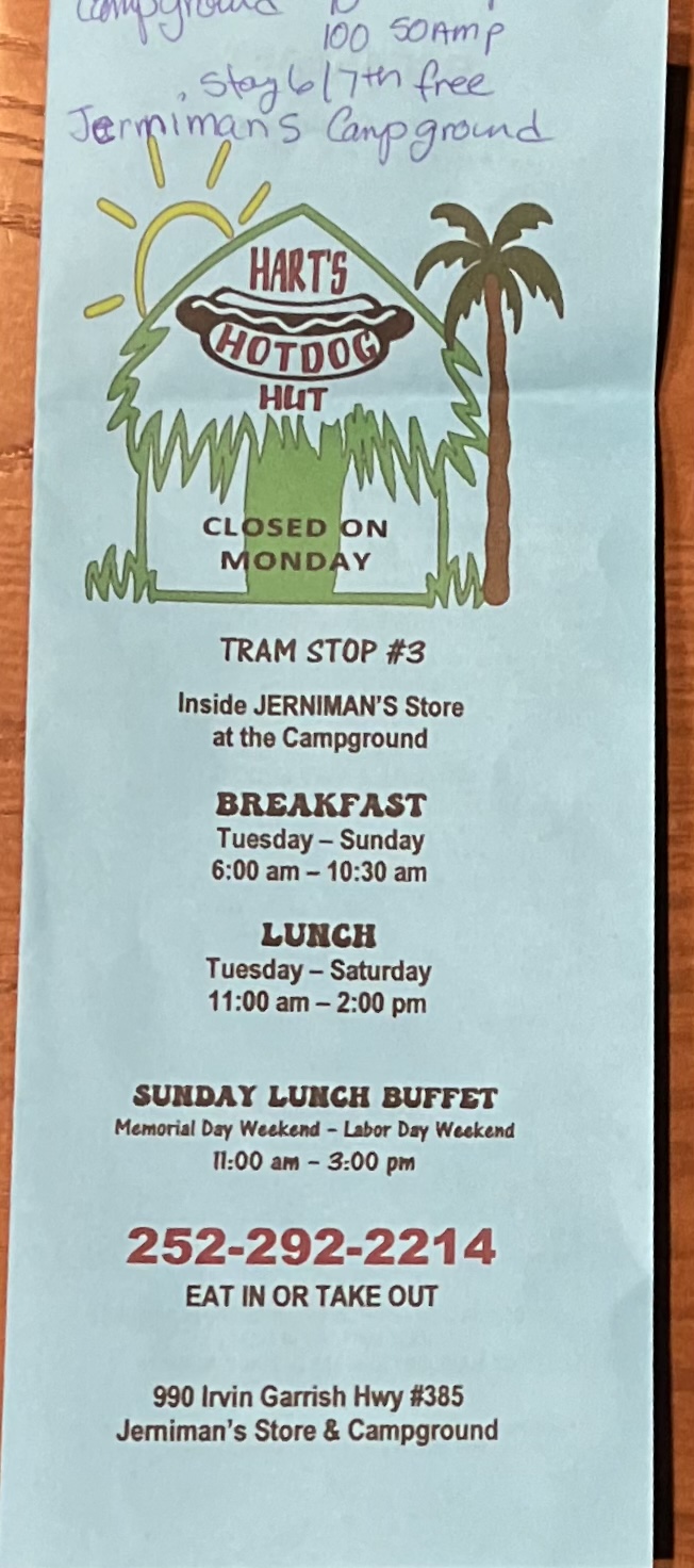 Hart’s Hotdog Hut was exactly what I needed after a long morning of exploring Ocracoke! The team running the kitchen was mindful of my food allergies and did everything they could to accommodate me. Since I was dining in, they also checked up on me several times, despite there being no obligation for them to—you order and pickup at separate windows, seat yourself, etc.—but they made sure I had what I needed and that I was happy with my meal.