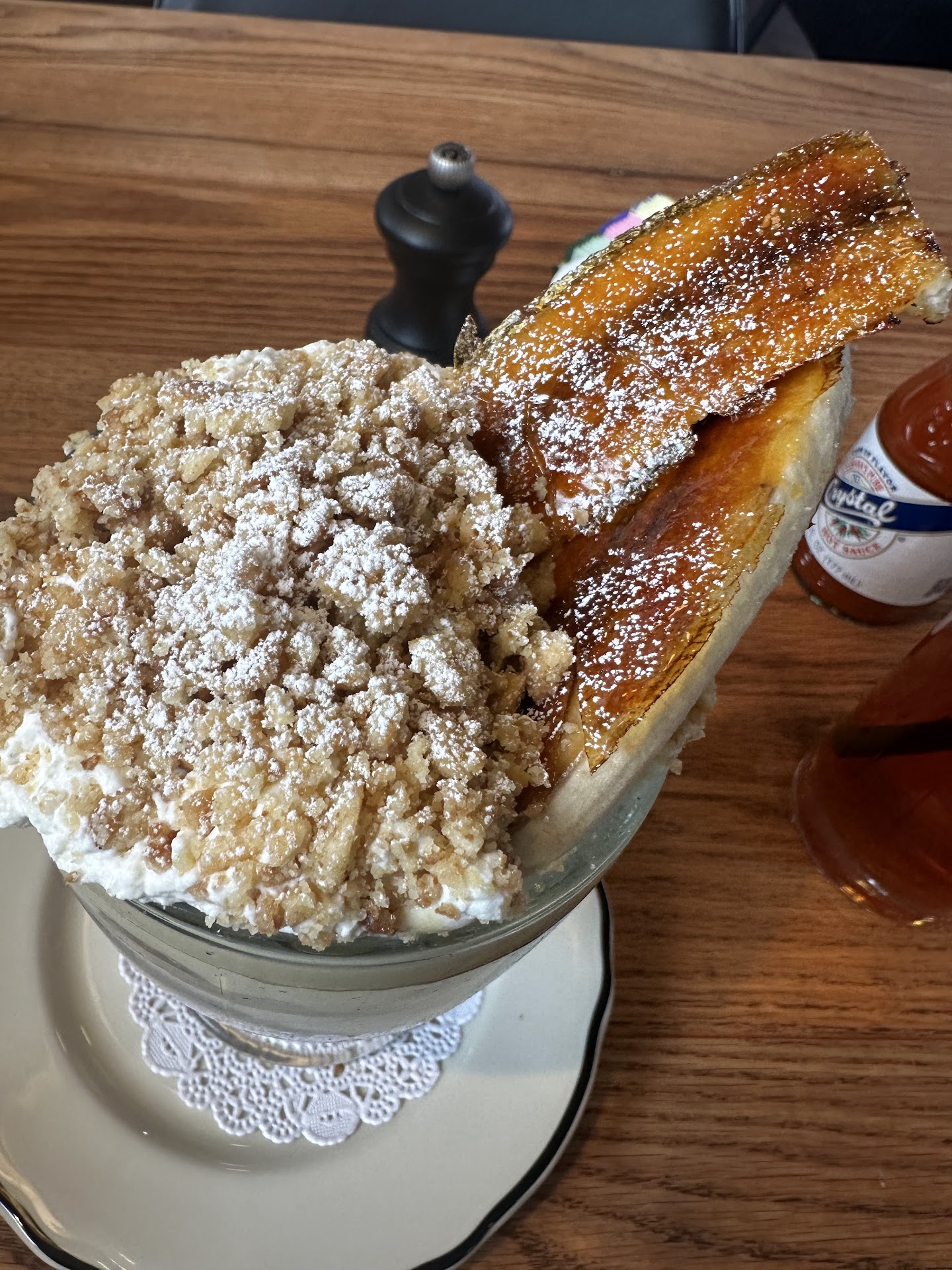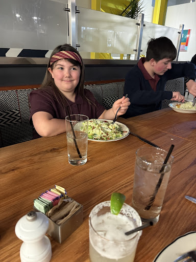Main courses were the Wagyu Smash Burger, Filet & Wedge, Club Salad, BBQ Chicken, Zydeco Salmon, Wagyu Barbacoa Tacos, and a Chopped Brisket Melt for me. I have only been a parent now for 14 years and one thing Iām sure of is good food makes for quiet children. All 4 were deeply engaged in their meal. The brisket melt was amazing along with the shoestring fries which were fun, crunchy and complimented the sandwich. Reports from around the table came in the form of āMy new favoriteā⦠Hat tip to the chefs in the kitchen.