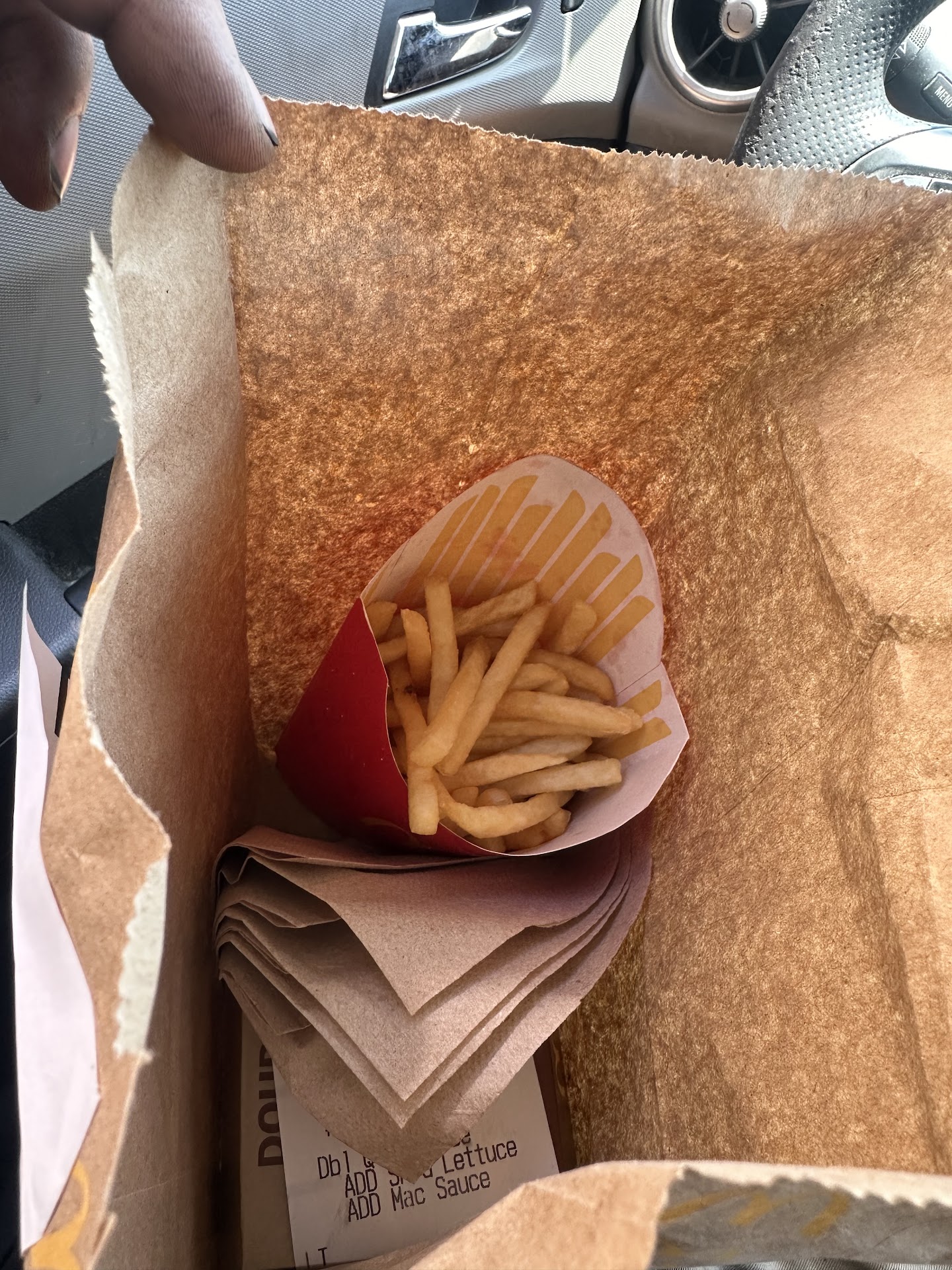 Read moreFraser cold when I asked for fresh hot fries so I go back up ask for fresh hot fries and instead they gave me another order of the same price from the first batch that I just got wasn't too happy with it told him about it and they said well we will just give you a money back when all I wanted was hot fries so left with what I had Big Macs had more lettuce on them then expected didn't ask for a side salad with my Big Macs. Me and my sister was the first ones in then a huge rush came in I drive through right behind us even though we had ordered first two Big Macs and a small fry three vehicles got to go out before we did and they ordered pretty much the Big Macs as we did very easy order nothing hard and we still had to wait for three orders to go out of the drive-thru before us and we were still first as I know how it goes but still I think everything should be within reasonable we didn't order large meals or anything except two Big Macs and yet we had to wait for three drive-throughs to go through before we did what can I say it...