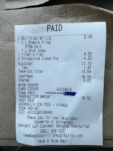 Read moreWent through the drive thru, sat in line and watched 2 cars arrive after me in the second lane just to have them be attended to before me. I went ahead and pulled up to the window thinking that maybe the speaker wasn't working, so I let the attendant know that I had been waiting to order. I told her I just needed a 20pc nugget and she said "oh you have to go get back in line." So I drove off and went to the McDonalds on Andrew's Hwy and just to prove my point, I ordered a 20pc nugget. I pulled up to the window paid for my order and just before I drove to the next window I asked the cash attendant if I could order a large fry......And yes the cash attendant place the order I paid and then pulled up to the next window....