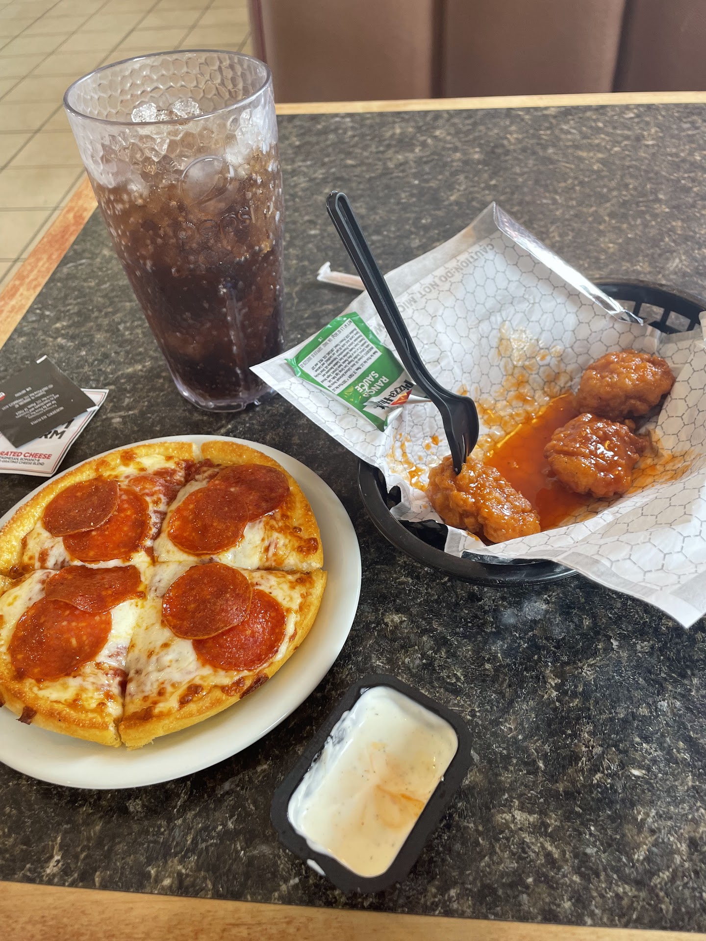 Read moreI had ordered online for carry out, it was around 9:00pm, and I decided to wait in the curbside parking area for my pizza. No one else was in the parking lot besides employee vehicles, I assume. I noticed many employees looking through the windows at my car, with a concerned look. A few minutes pass by, and 3 OPD officers surround my car. The pizza hut employees had called the police on me, as they thought I was a threat to them, by simply sitting in my vehicle waiting for my pizza. As soon as I got out of my car, the police stepped back as they realized I was not a threat, and was in fact, simply waiting on my pizza. The employees all began to apologize to me, and offered free condiments, but I was not phased. The incident was shocking, and slightly traumatizing. The pizza was good, but the...