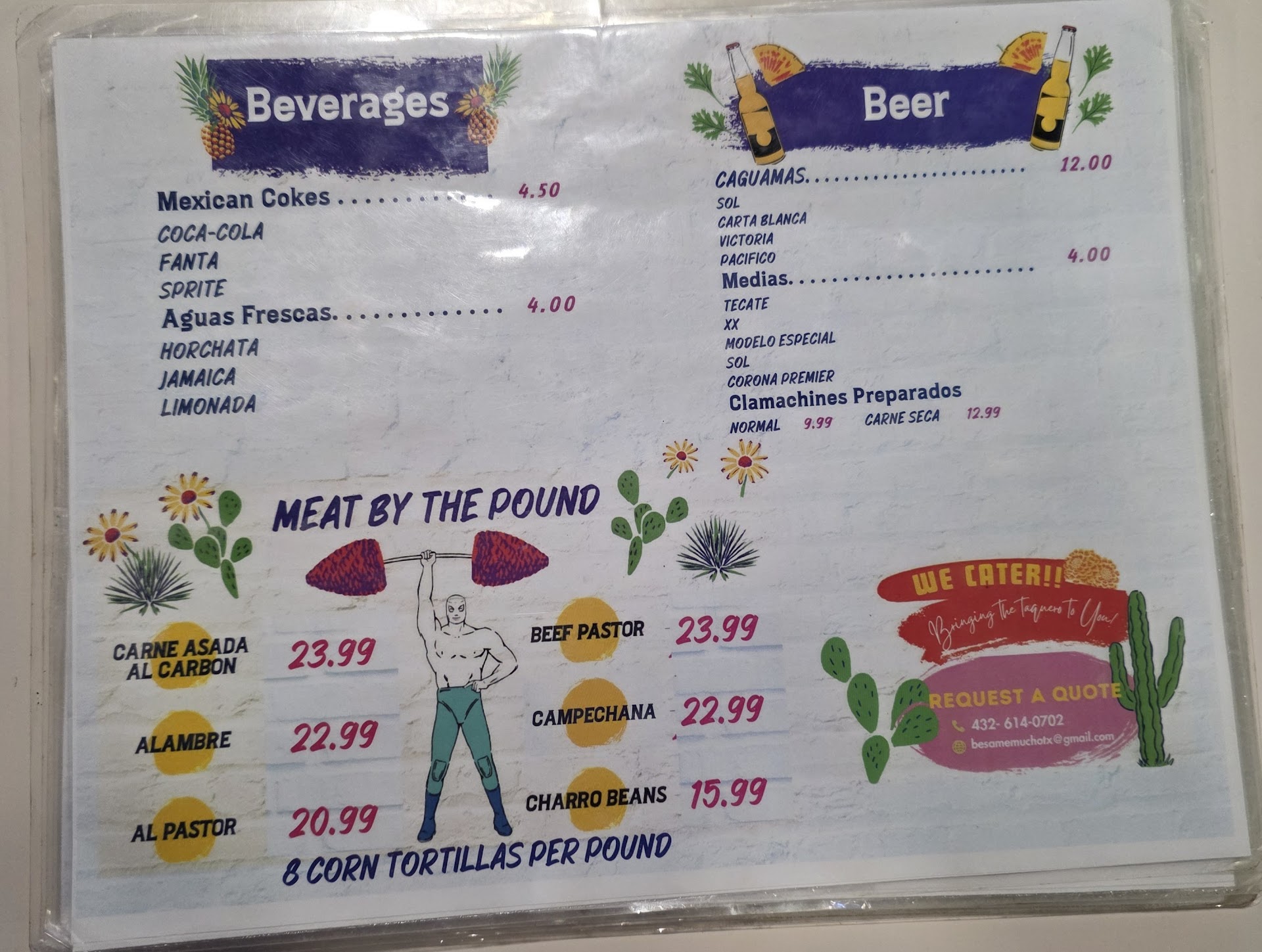 Read moreLittle gem in the middle of Odessa. I had an horchata that was very flavorful with the right viscosity (horchata connoisseurs know what I mean). I tried 3 tacos. $6 a pop may be overwhelming, but they make up for it with the taco’s portions and overall meat seasoning. Carne asada was thinly sliced and seasoned just right. I never had seasoned tripita like this, but it was probably my favorite in the area. Alambre was delicious and began spilling out of the tortilla due to the portion. My plate included grilled onions, jalapeño, and potatoes. I look forward to visiting again and...