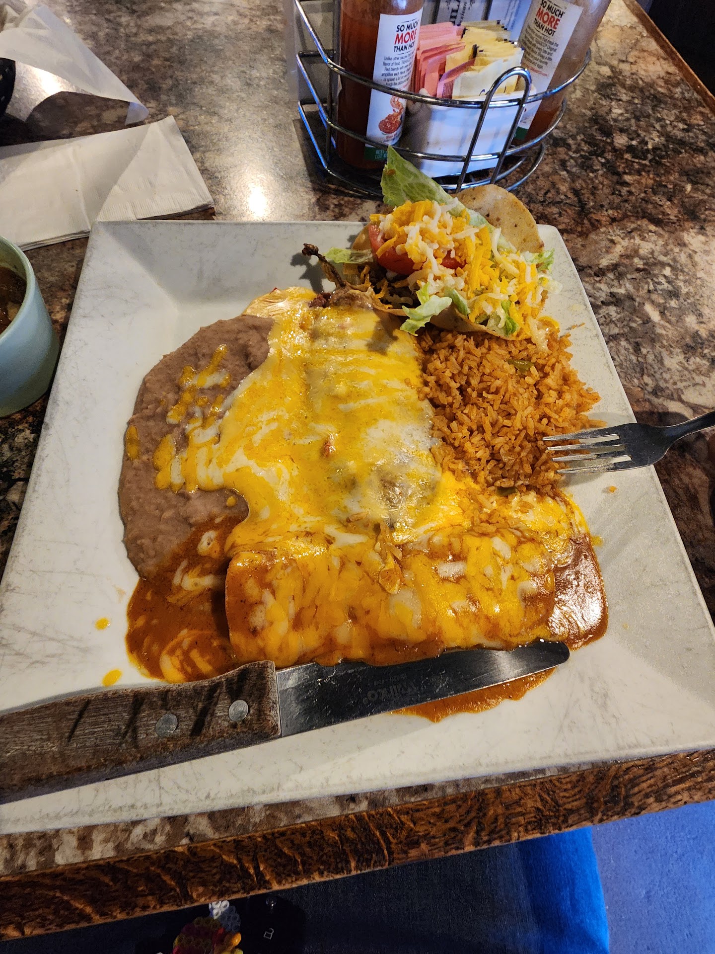 Been going here for 25-30 years. Went in to order ātake outā., (plats deluxe). Requested beef enchilada in lieu of cheese. Person repeated order, and it was correct. Beef taco, beef reilano and beef enchilada. Easy, right?! Got home and had cheese enchilada and cheese chile relieno. Called and same order taker said she called my wife and confirmed she wanted cheese?! How, and why, could she call my wife with no number? And so I ask what number she called? She replied with a number nowhere near our phone number. This makes zero sense. So they said bring it back and they would make new plate. Then when I drive all the way back over there, another female argued with me about the enchilada being beef?! I know the difference between cheese and beef. And further stated the Chile reilano came with cheese?! What?! The menu clearly states the Chile reilanos are beef?! I left the plate and could not believe they would argue about it. Iām not trying to beat this restaurant out of food, but also expect to get what I ordered. ...