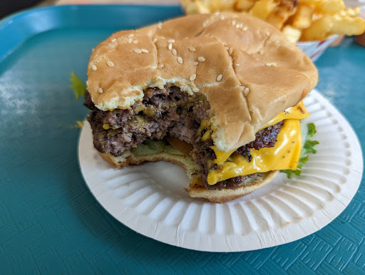 My partner ordered the double burger and had everything on it, except for tomatoes. Her burger had the same odd seasoning on top of the cheese and the house sauce. My partner did not really like the burger. Something about the beef gives it a different, almost softer texture and consistency. I do agree that the beef is softer than what I am used to.
