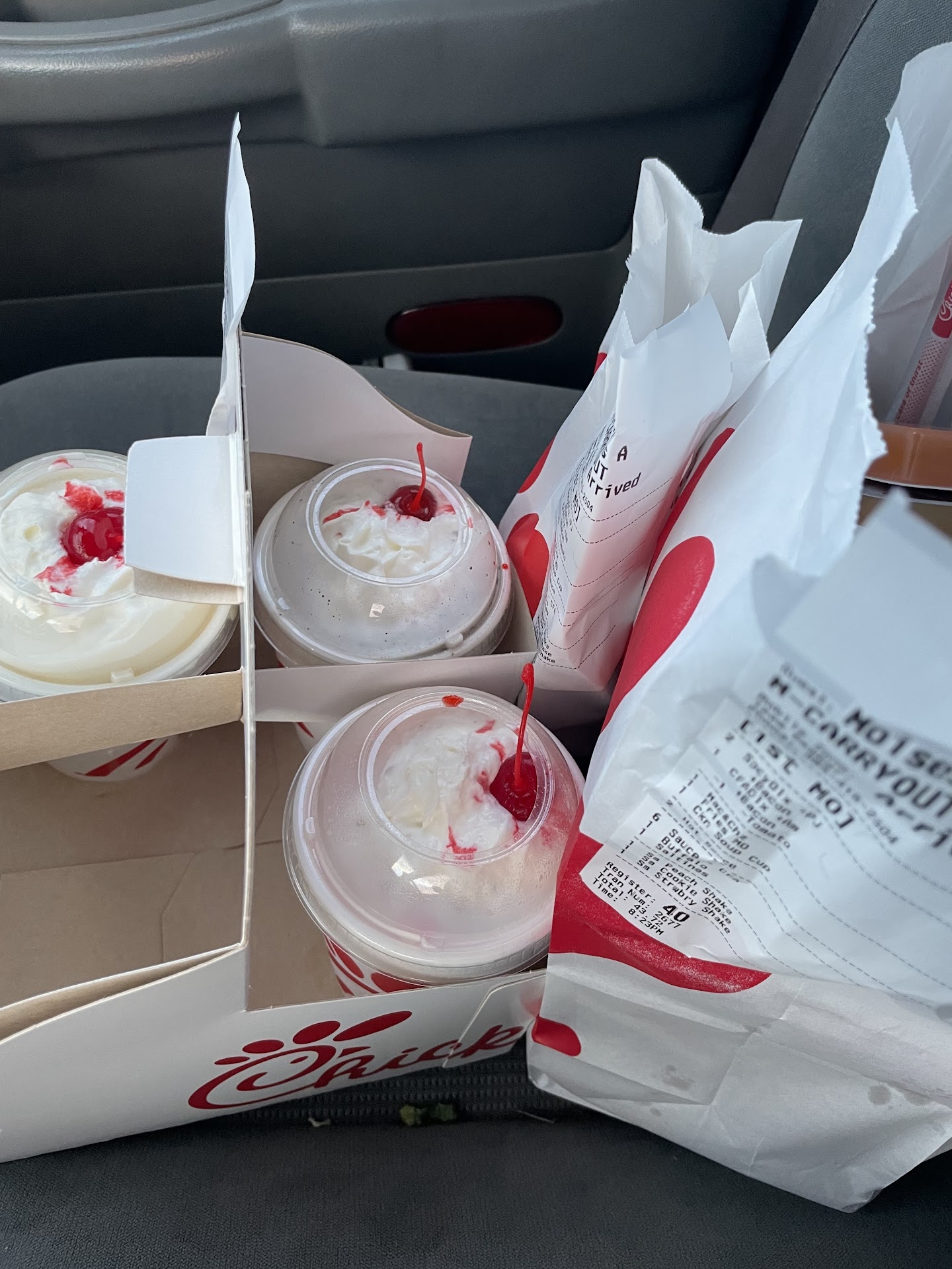 Read moreI hate to write a bad review because I love chic Fila but I think I had the worst fast food service I’ve ever had, and Chic Fila is the place you’d least expect it. I ordered two sandwiches and I had enough points on my app to get them for free so I used the points. I got some fries too. I go sit down and after awhile they finally bring my fries but didn’t take my table marked. So I figured they’d be bringing my sandwiches in a little bit. Well I ended up waiting like 20 minutes because I usually don’t like to stir anything up. But I go up to the counter and they just didn’t even know about my sandwiches. So then I had to go through the whole process again of ordering them and it just seemed like the workers didn’t really care. Like I feel like back in the day people would offer you something for wasting your time. Like even just a free drink or something would’ve felt nice. But nowadays nobody cares to make things right, not even chic Fila. Luckily I didn’t have anywhere to be tonight but most times when you get fast food you’re in a hurry, this incident could’ve thrown off my whole evening if that was the case. This review might seem petty but I just didn’t expect to be treated like that...