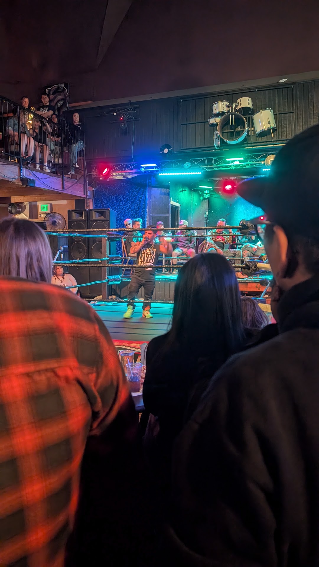 I walked around and found seating upstairs to watch the show. The top seating felt like going upstairs in my parents attic where things go to collect dust. The table was super sticky and felt unsanitary to touch. I noticed an entire separate bar upstairs that was not even in service on a busy Friday night. Why? On the main floor, the bartender would go around bussing tables in between people ordering drinks. No waitress?? I felt bad, the bartender was doing multiple jobs (whoever you are, you need a raise!!).