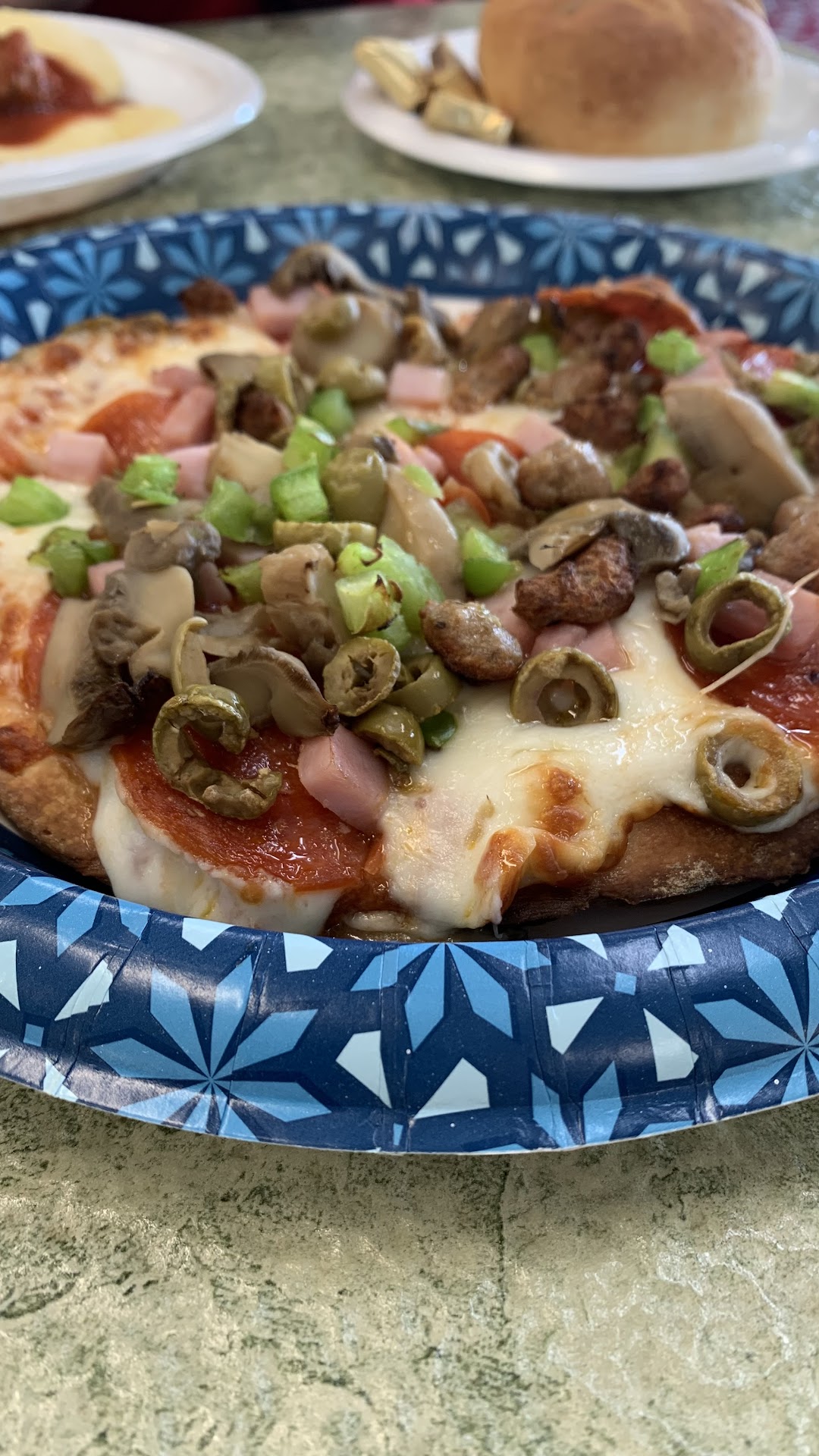 Food was not impressive at all. It tasted like they had microwaved every item after they opened the can. The pizza was ok but was served with canned mushrooms which were rubbery in texture.