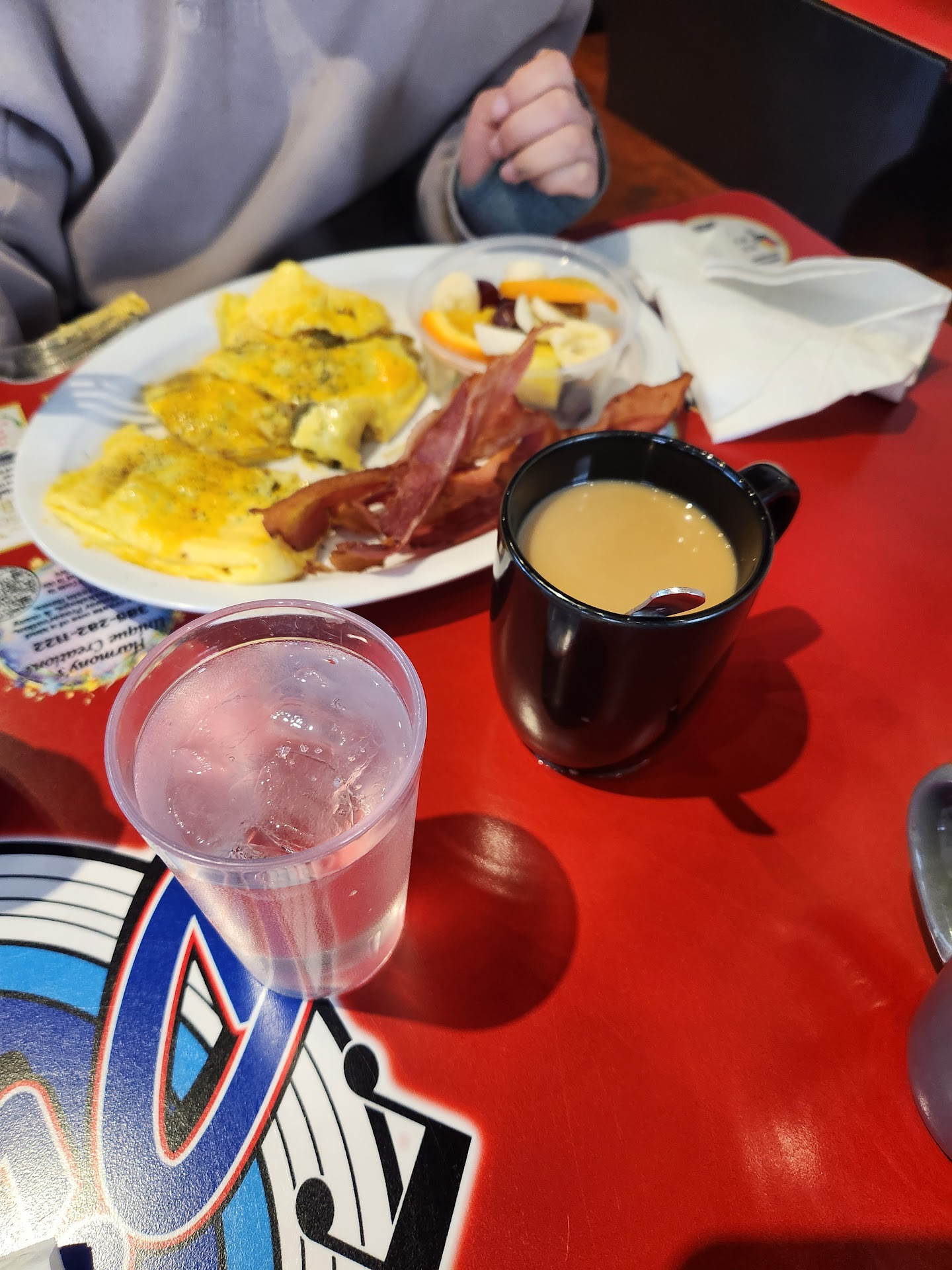 Read moreWe came here on March 3rd at 11:00 AM for the first time. My mom wanted a side of French toast, but she wasn't sure if it was only half a slice or whole slice. The waitress answered the question, but with a partial rude answer. She said it's either a side of French toast or it's an order of 3 French toast. My mom just wanted to know if it was a slice or a whole piece. After the waitress rolled her eyes, we finally got a straight answer. There were only 6 patrons in this diner on a Monday early afternoon. It took an HOUR to get our food. Meanwhile, our coffee was getting refilled continuously. However, as we used our creamer, she would annoyingly pick them off of the table. She almost seemed annoyed as she was taking them off the table. The waitress definitely ruined the vibe of this place. The food was very tasty, and they do have a ton of options on their menu. As a breakfast restaurant, this place is steep for prices. For my fiancé and I, it was 47 dollars without tip. I gave a 20% tip, so it was higher after that. For my mom to have a side of French toast and my daughter's omelet, it was $27 without tips. Insane prices for breakfast. I can't see the value of going back. The food is great, but it's not worth it,...