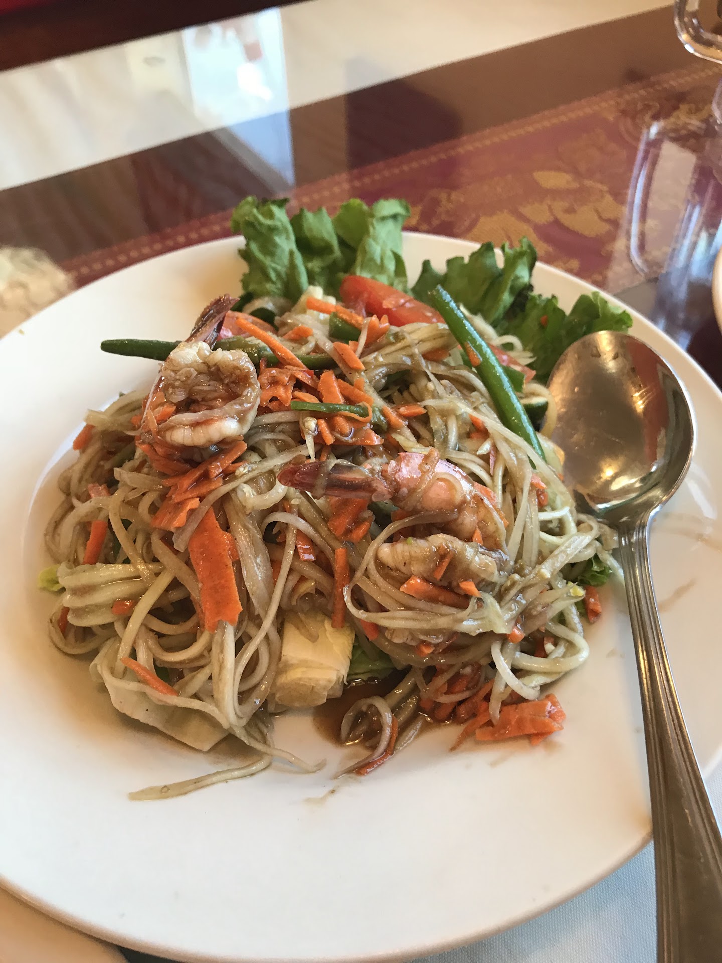 I ordered green curry + shrimp. It has peanuts which is cool, so I was excited, But they were stale. You can taste it even though they were cooked. They put in potatoes. That’s not traditionally Thai. Also they had a lot of carrots and a lot of potatoes. Very little meat. Shrimp had 3 large pieces but not much beef.