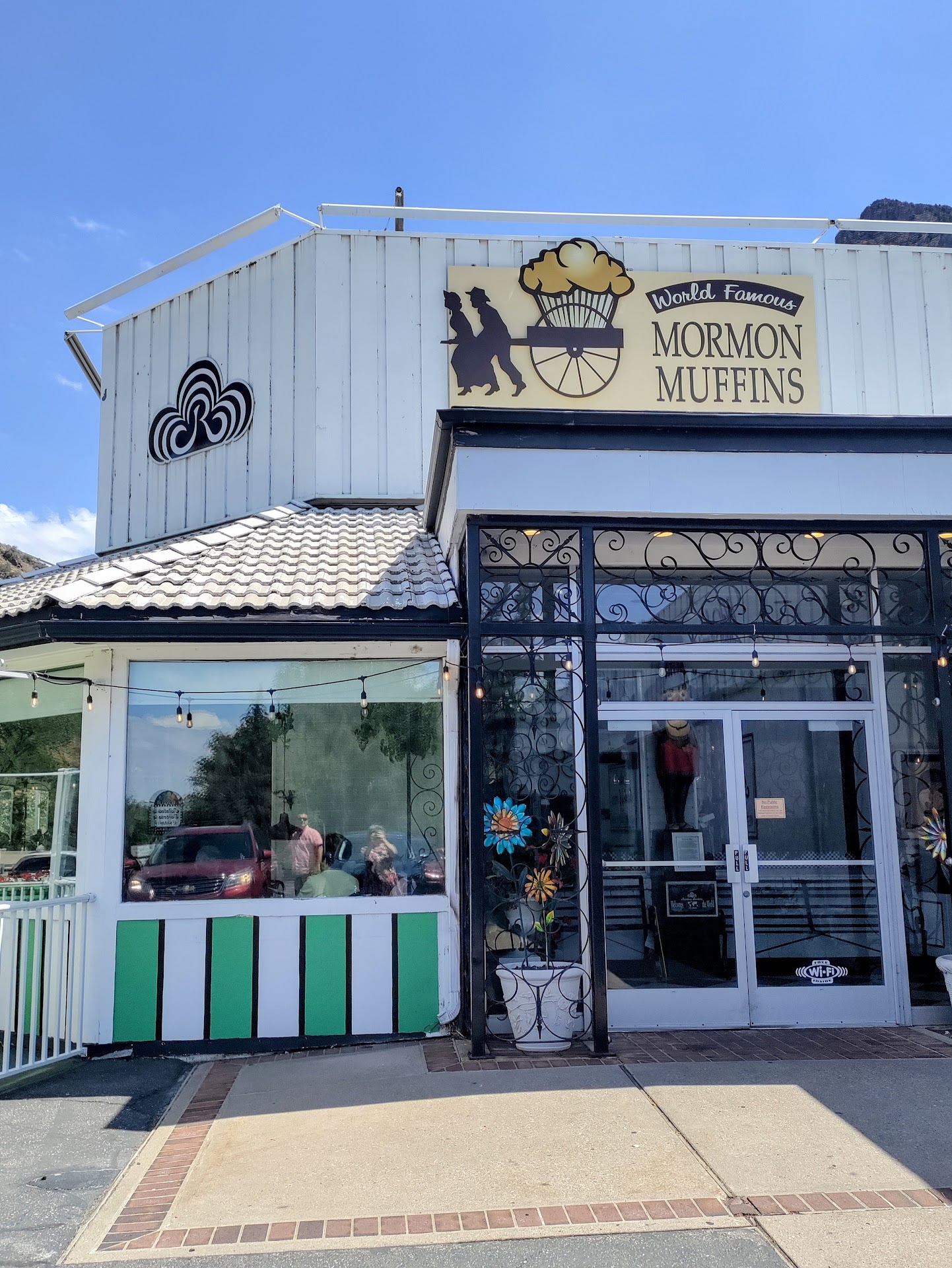 Read moreThis place was the most pleasant surprise I have had in a long while, as far as restaurants go. Absolutely wonderful food! I had the Charbroiled Chicken Club sandwich with pasta salad. There was NOTHING typical about this food. No typical, drippy sauces or normal buns... it was charbroiled teriyaki chicken breast with bacon and melted Swiss cheese, on a pretzel bun, (which I LOVE!), with a "pub mustard" sauce spread on it. It was absolutely, 100% delicious! I was thinking the pasta salad would be the Italian seasoning style, with cucumber and tomatoes, but NO! It was bow-tie pasta, whole grapes, a white dressing and it was AMAZING! It even came with sliced apples on the plate to top it all off as a truly unique lunch. The restaurant itself is at the bottom of a canyon, and is tucked off the roadway enough that you don't hear traffic or smell fumes, and it is INSIDE a huge gift boutique! Beautiful plants all over, beautiful artwork and photos line the walls, and it was exceptional! Never knew they were there, but will go back many times without a doubt. Our server was attentive, kept our needs met and didn't complain or push us when we sat at the table after our meal to catch up. (This was after the lunch rush, people were not waiting to be seated, and she had other open tables). We were so thankful and it made the experience perfect! We bought "Mormon Muffins" on the way out, and then went through the boutique. What I thought would be more like a gift shop turned out to be a marvel of beautiful things of all sorts, for all seasons. I haven't had that good of an experience dining out, in years!! Kudos and many thanks to the owners...