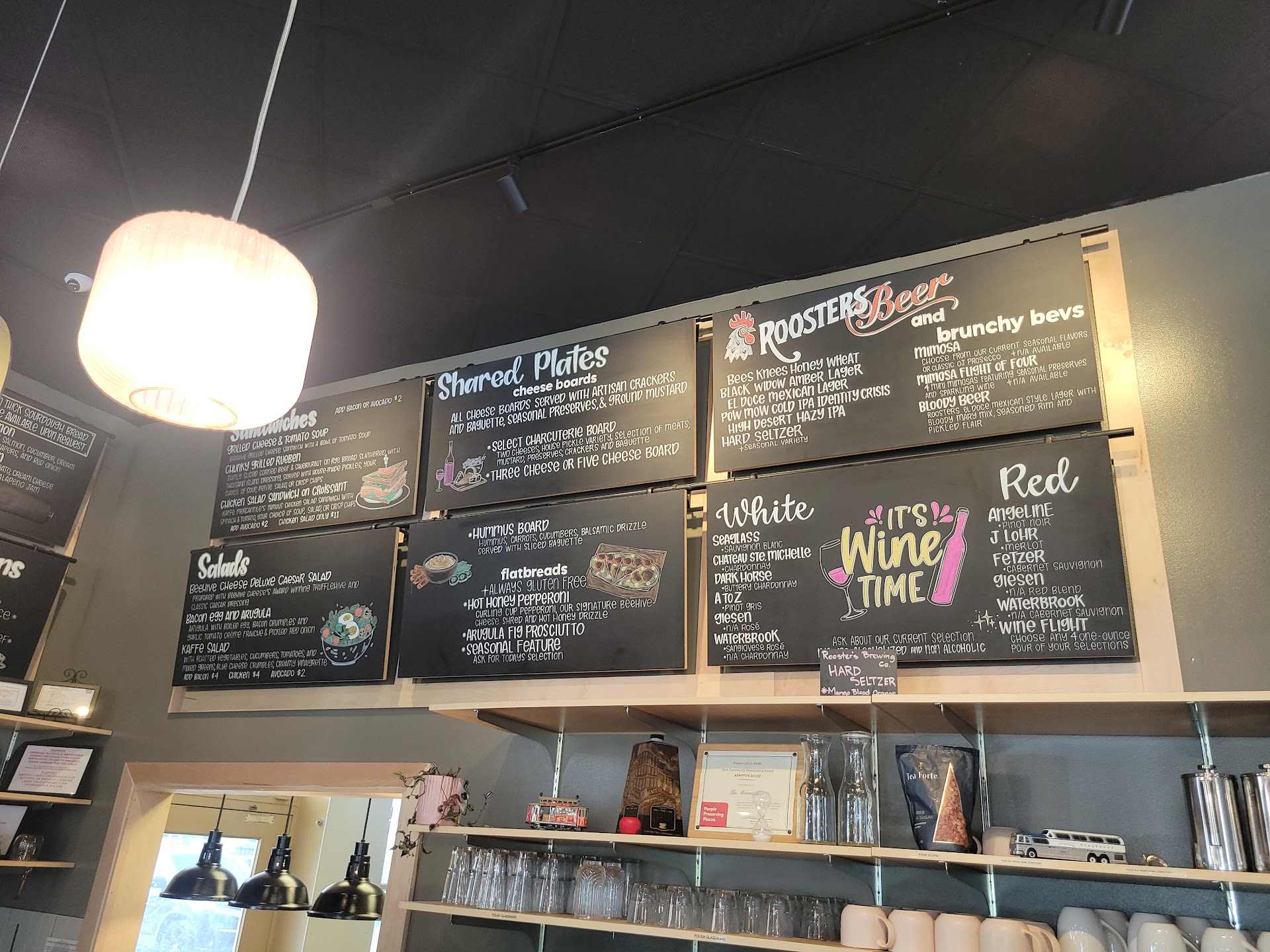 Some selections feature custom Beehive cheese: the grilled cheese, biscuits and gravy, rueben, and rocket toast. The Caesar salad has truffle hive (a speciality cheese).