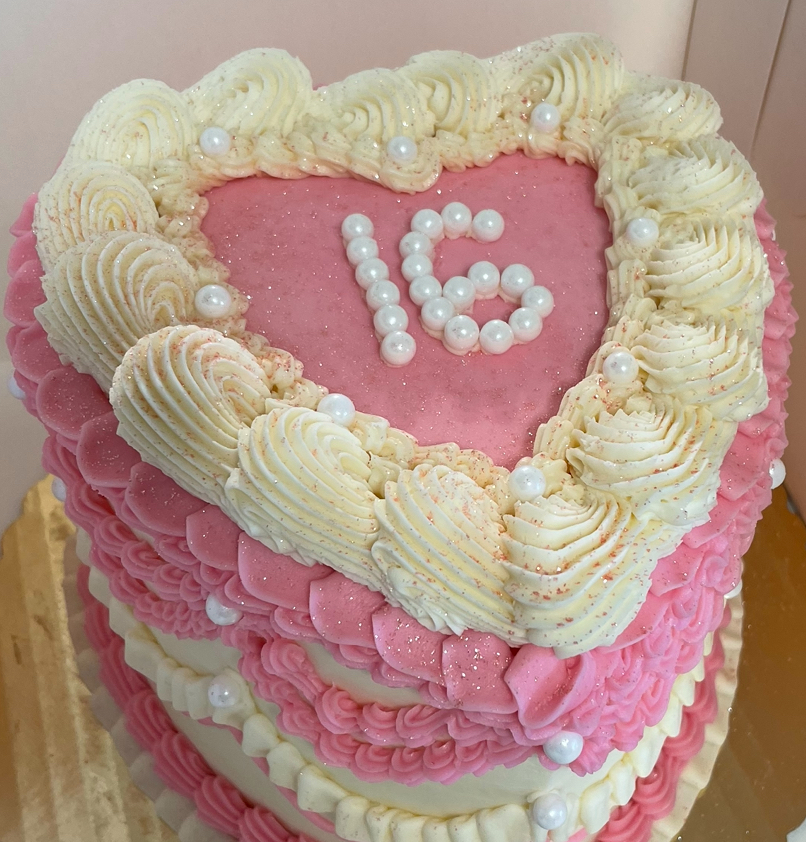 Nice people and its a cute place. I did a customize vintage heart cake for my daughterâs birthday. I think the cake was heavily frosted. The cake had some drier hard pieces and was overall nothing mind blowing. I noticed when looking at the detail piping on the top of the cake its not the best piping. Customize cakes are expensive and imo the detail of piping and capturing that look should stand out. The pipping of the top heart cake was piped going up in one direction and down in the other direction which made it look not cohesive. Heart cakes piping I have seen at the top is both sides are piped upwards same direction to give it that...