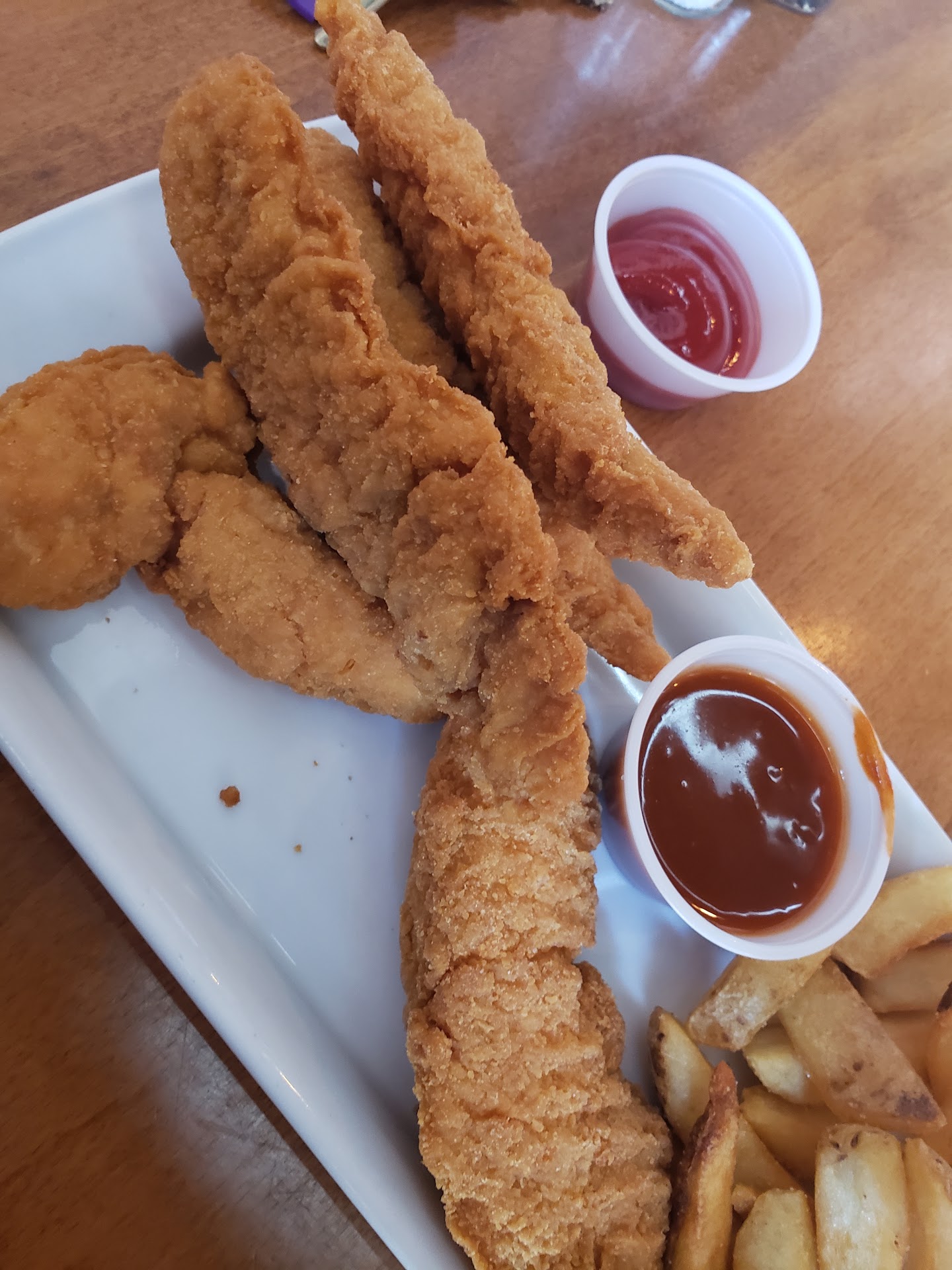 We were sat not long after that and were served by an exceptional employee, cean. He was friendly and polite and told us the specials etc. He got us our drinks and answered all questions we had. Our food was amazing. My husband got a turkey burger and I got the chicken tenders. The portions were a little small but the food was delicious.
